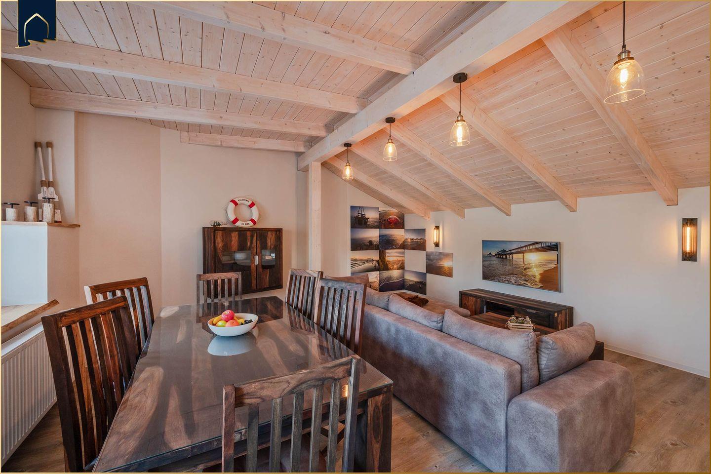 Haus Becker App. Brücke bietet auf 71 m² im ersten Stock ein modernes Apartment mit offenem Wohn- und Essbereich, voll ausgestatteter Küche, einem Schlafzimmer und eigenem Bad. WLAN, zwei große Fernseher, Vinylböden, Garten mit Grill, Privatparkplatz sowie Waschmaschine sorgen für Komfort. Der Sandstrand ist nur 550?m entfernt, Einkaufsmöglichkeiten und Restaurants befinden sich in direkter Nähe.