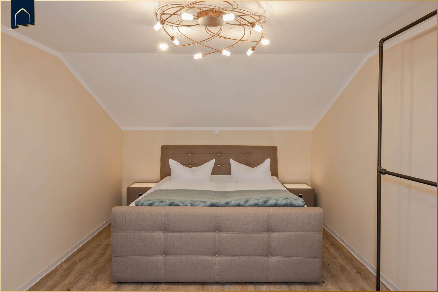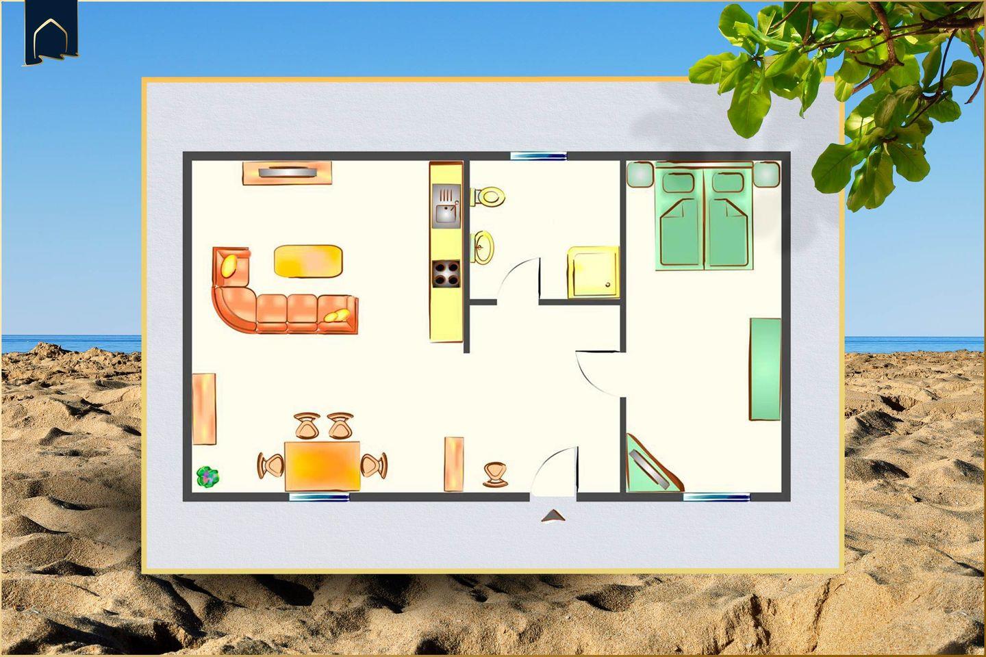 Die Wohnung selbst ist hell, modern und komfortabel eingerichtet. Im Wohnbereich lädt ein großes Sofa zum Entspannen ein, während der Esstisch genügend Platz für gemeinsame Mahlzeiten bietet. Die voll ausgestattete Küche verfügt über Backofen, Herd, Kühlschrank mit Gefrierfach, Mikrowelle, Spülmaschine, Kaffeemaschine, Toaster und Wasserkocher. Im Schlafzimmer erwartet dich ein bequemes Doppelbett sowie ein Zustellbett, falls benötigt. Brettspiele, Radio, CD-Spieler und zwei TVs sorgen auch bei schlechtem Wetter für Unterhaltung. Das moderne Badezimmer mit Dusche, Waschbecken und WC bietet zusätzlich einen Haartrockner, Kosmetikspiegel und Handtücher.
