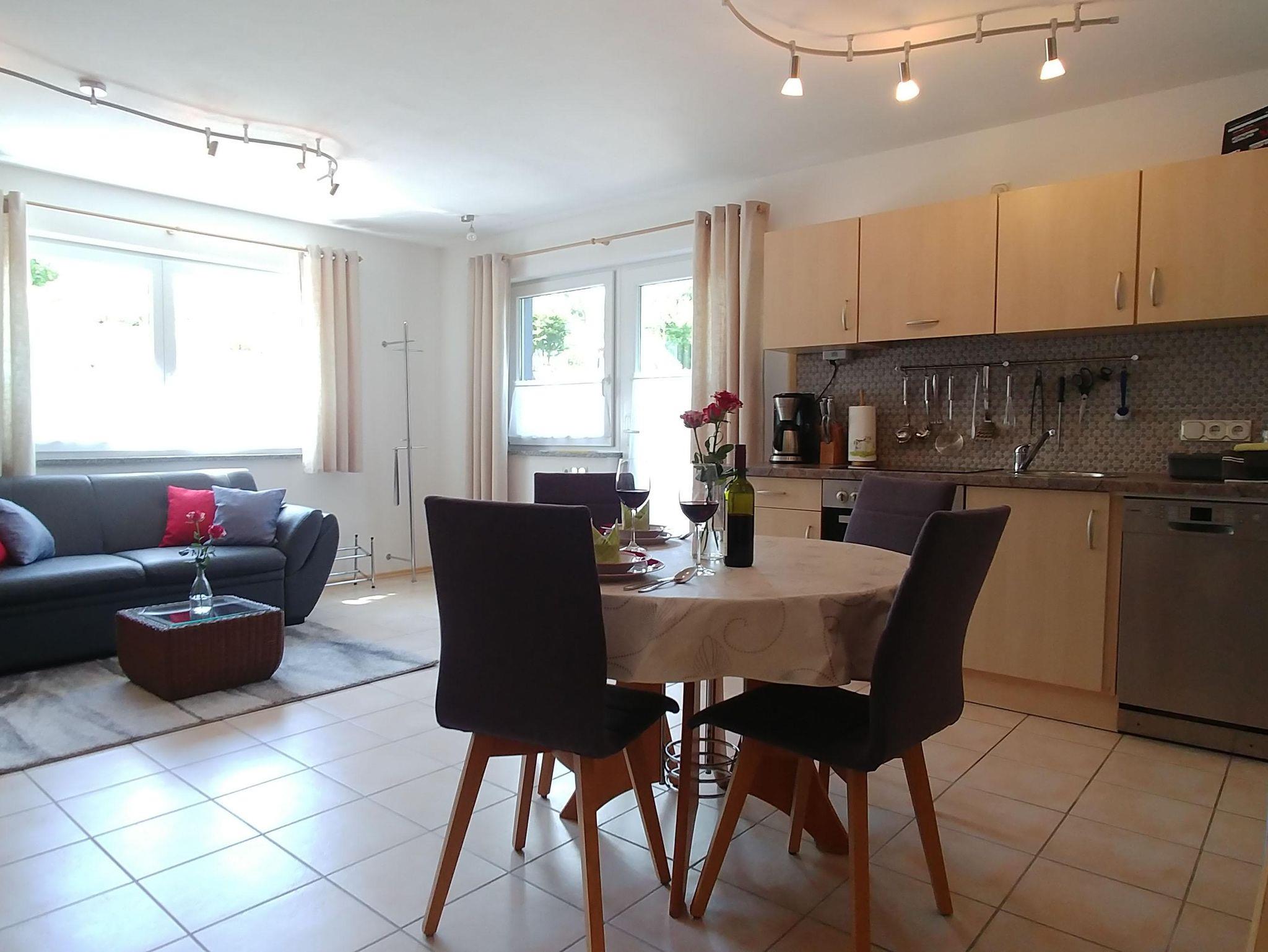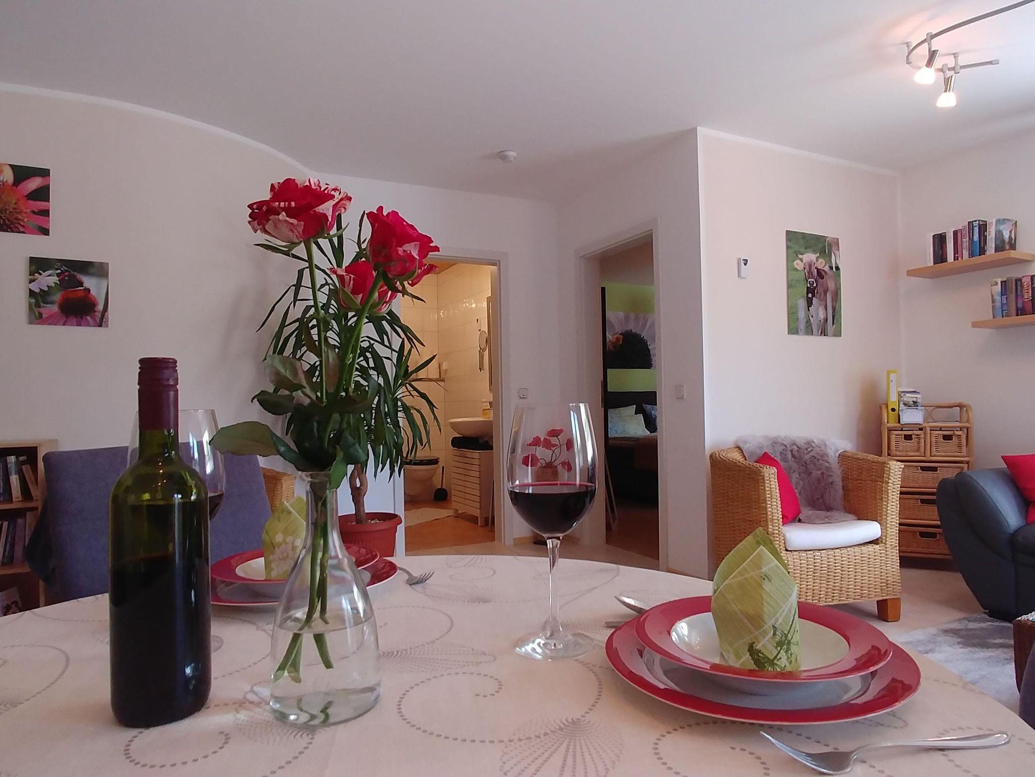 Gemütliche 4-Sterne-Ferienwohnung mit Wohnküche (Spülmaschine, Kaffeemaschine, Toaster, Wasserkocher, Eierkocher, Flachbildfernseher), Schlafzimmer (Safe, 1 m breite Betten, Fußende der Betten offen), Bad mit ebenerdiger Dusche und WC, sep. Eingang mit kleiner Terrasse. Komplette Kleinkindausstattung vorhanden. Gartenmöbel, Telefon, Internetzugang.