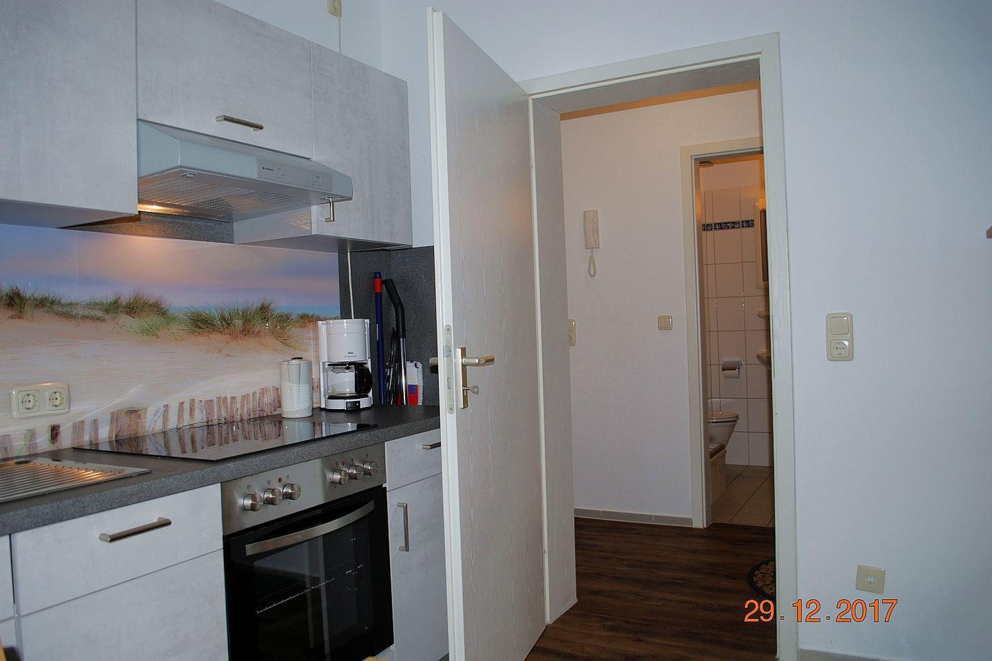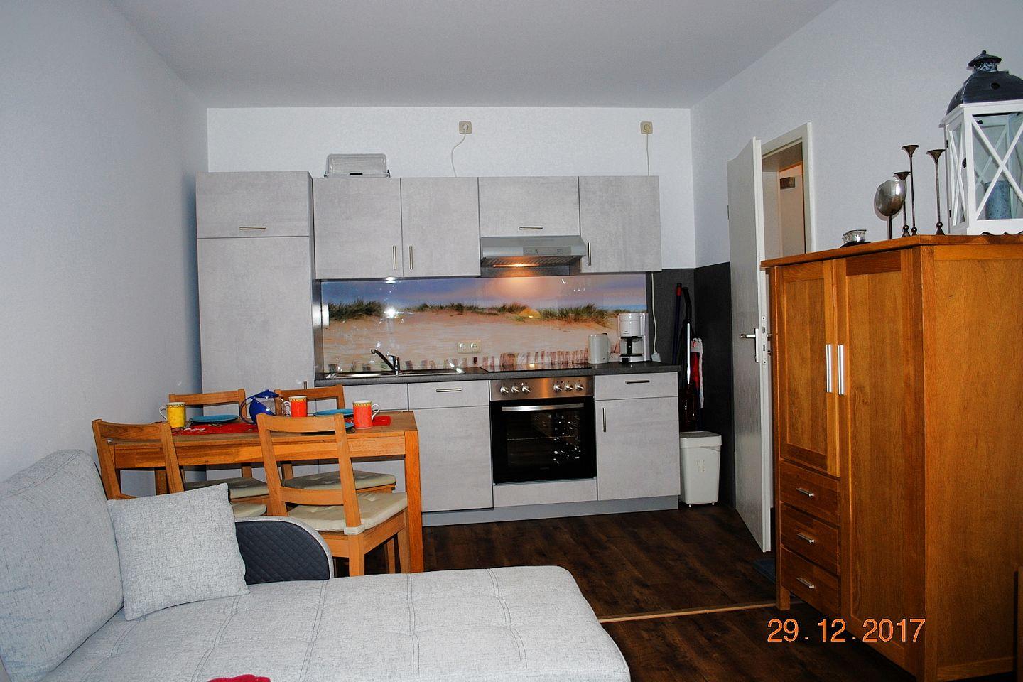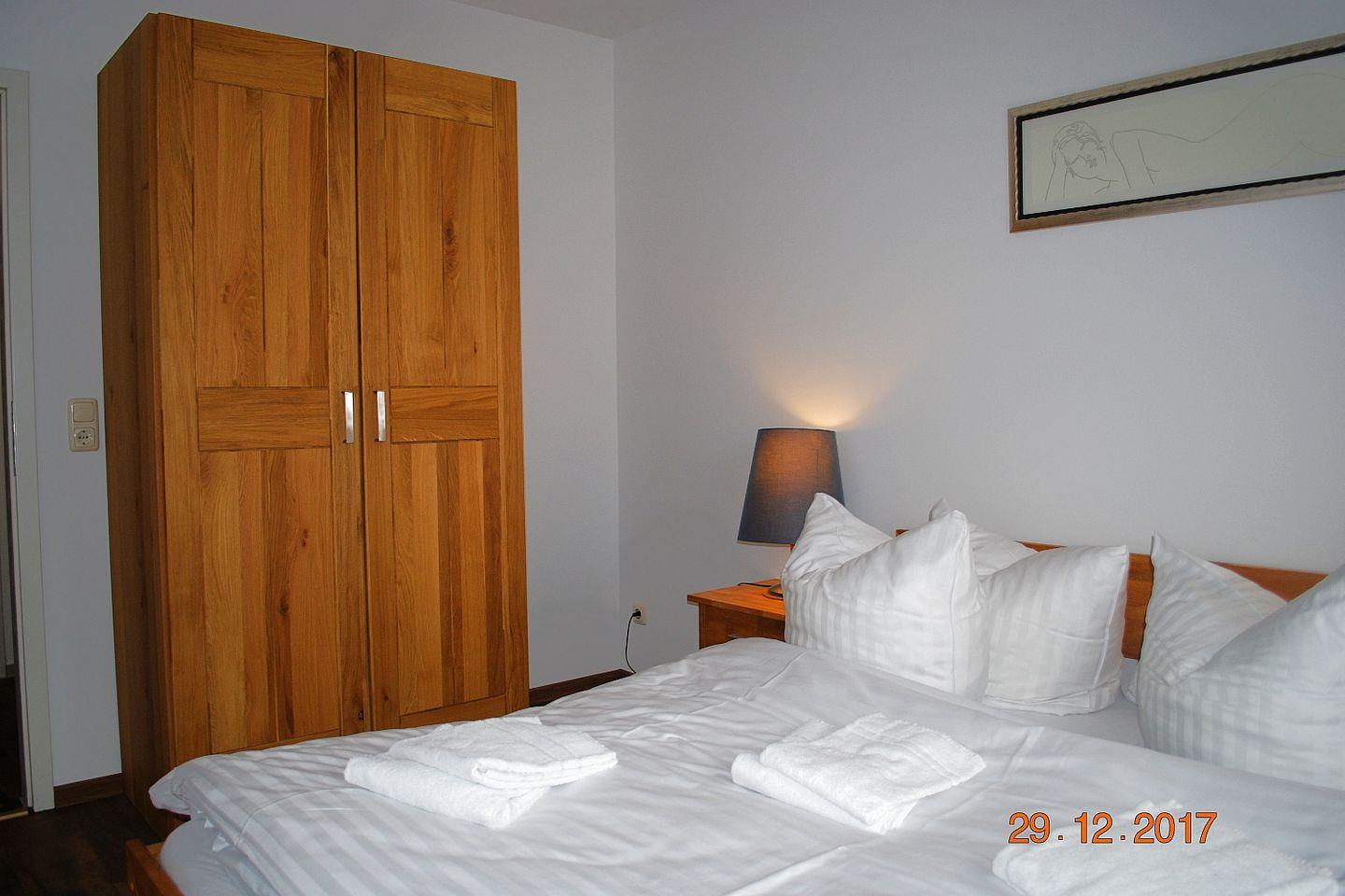 Die gemütliche, helle 35 m² große 2-Zimmer-Wohnung 22 befindet sich im 1. OG des Hauses. Die Ferienwohnung verfügt über zwei kleine Süd-West-Balkonen, ein großzügiges Schlafzimmer (Doppelbett), ein großes Wohnzimmer mit Essplatz und einer weiteren Schlafgelegenheit, eine voll ausgestattete Küchenzeile und ein Duschbad. Ein Tiefgaragenstellplatz und kostenfreies Wlan stehen zur Verfügung.