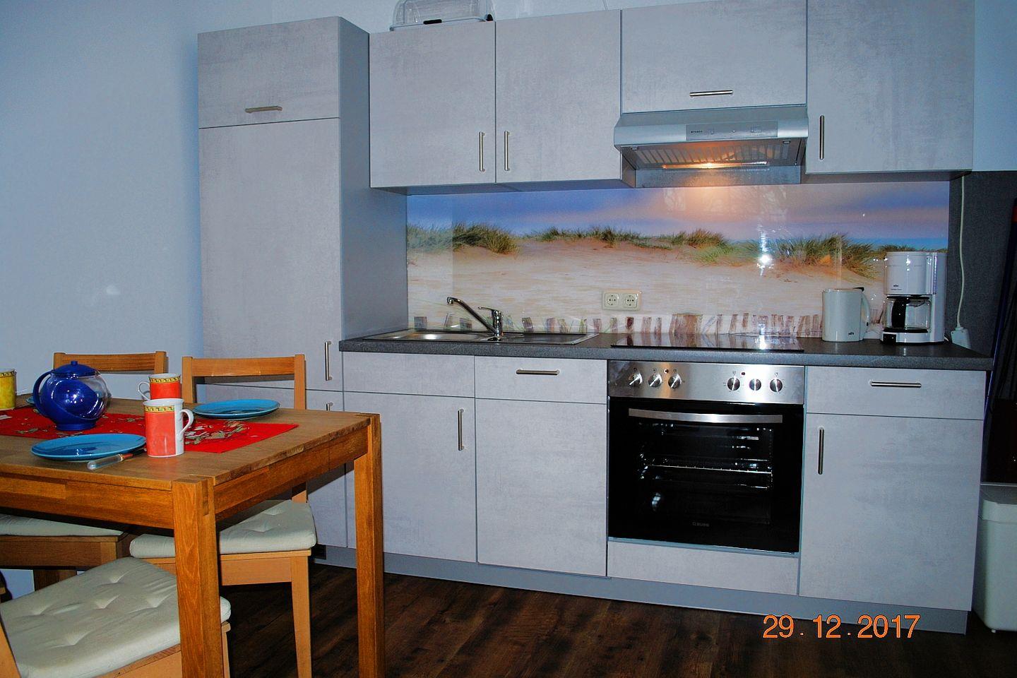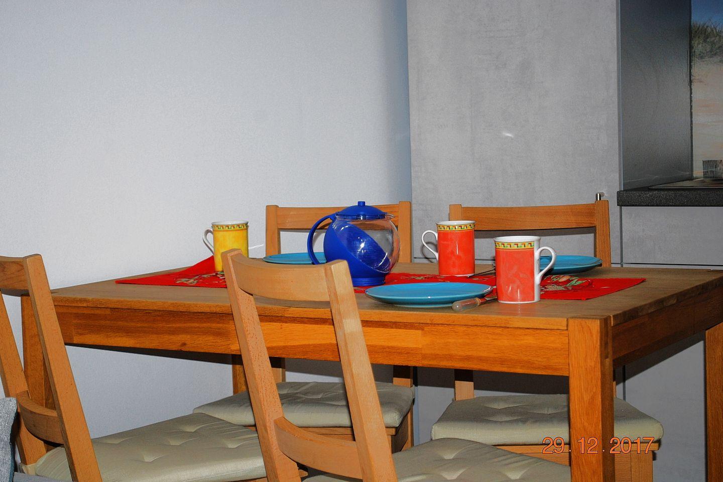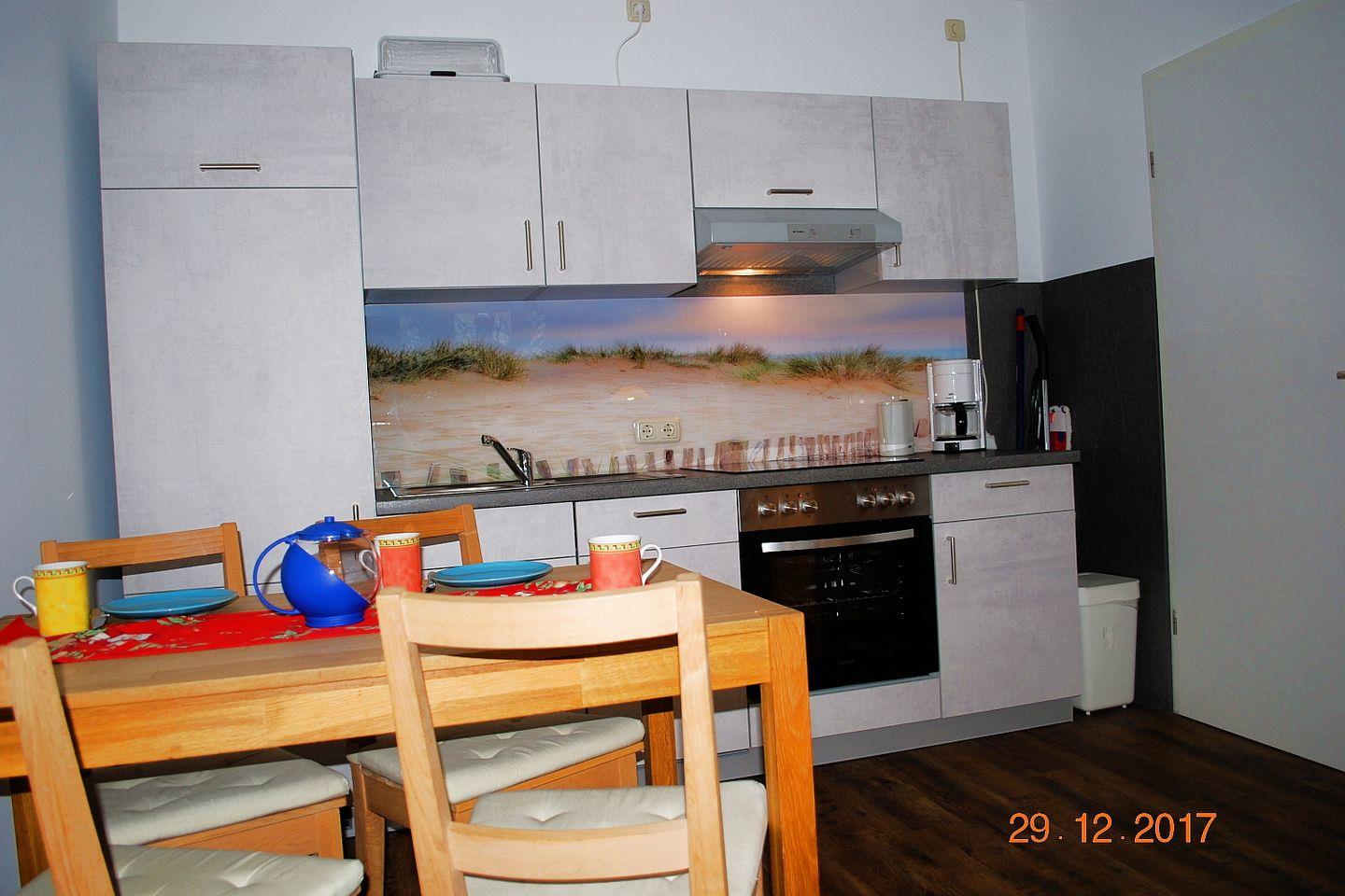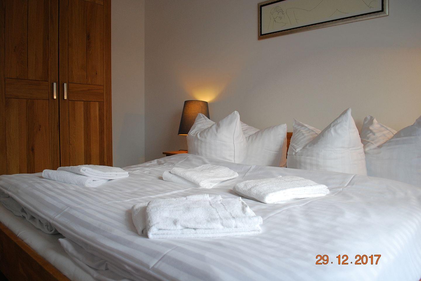 Die gemütliche, helle 35 m² große 2-Zimmer-Wohnung 22 befindet sich im 1. OG des Hauses. Die Ferienwohnung verfügt über zwei kleine Süd-West-Balkonen, ein großzügiges Schlafzimmer (Doppelbett), ein großes Wohnzimmer mit Essplatz und einer weiteren Schlafgelegenheit, eine voll ausgestattete Küchenzeile und ein Duschbad. Ein Tiefgaragenstellplatz und kostenfreies Wlan stehen zur Verfügung.
