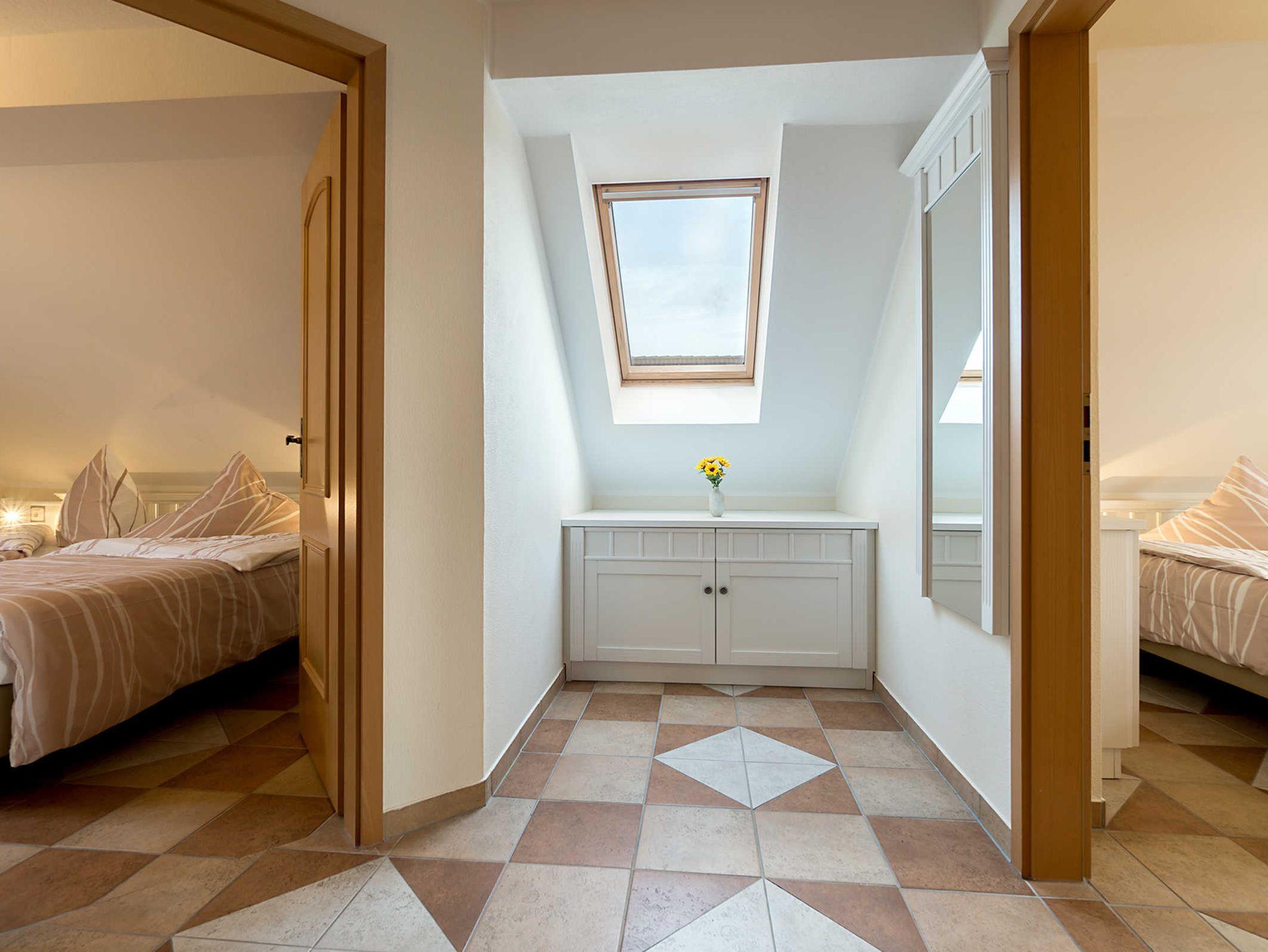 Auf 85 m², verteilt auf 3 Schlafzimmer mit Doppelbett, einen Wohnbereich mit Küche, Balkon sowie 2 Bädern, lässt es sich herrlich erholen. Ein Bad verfügt über eine Dusche, das andere über eine Badewanne.