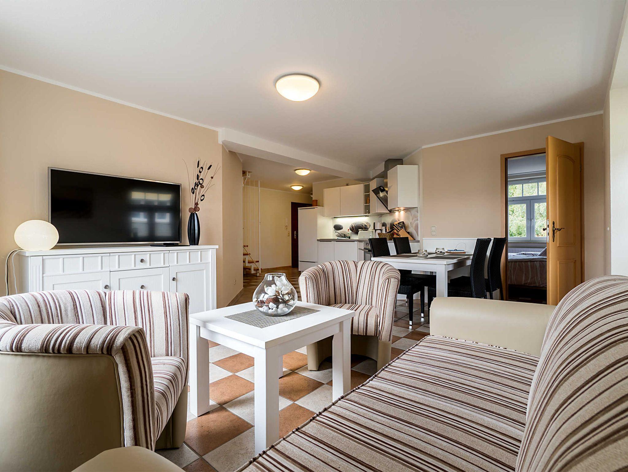 Die Ferienwohnung ist geschmackvoll eingerichtet und gehört zu einem Gästehaus mit insgesamt 4 Ferienwohnungen. Unsere Villa wurde 2013 komplett renoviert und neu möbliert. Im Keller stehen eine Waschmaschine und ein Trockner zur Verfügung. Auf dem Grundstück kann eine Sitz- und Grillecke genutzt werden (Gemeinschaftsnutzung) und unsere kleinen Gäste können sich in und an unserem Buddelschiff austoben. Mitgebrachte Fahrräder können im abschließbaren Fahrradschuppen sicher untergestellt werden.