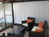 Sie verfügt über einen kleinen Wintergarten, eine Küche mit Backofen, Kühlschrank und Geschirrspüler, ein Wohnzimmer mit Couch und Fernseher, ein Schlafzimmer mit Doppelbett und Kleiderschrank sowie ein Bad mit Waschtisch, WC und Dusche.