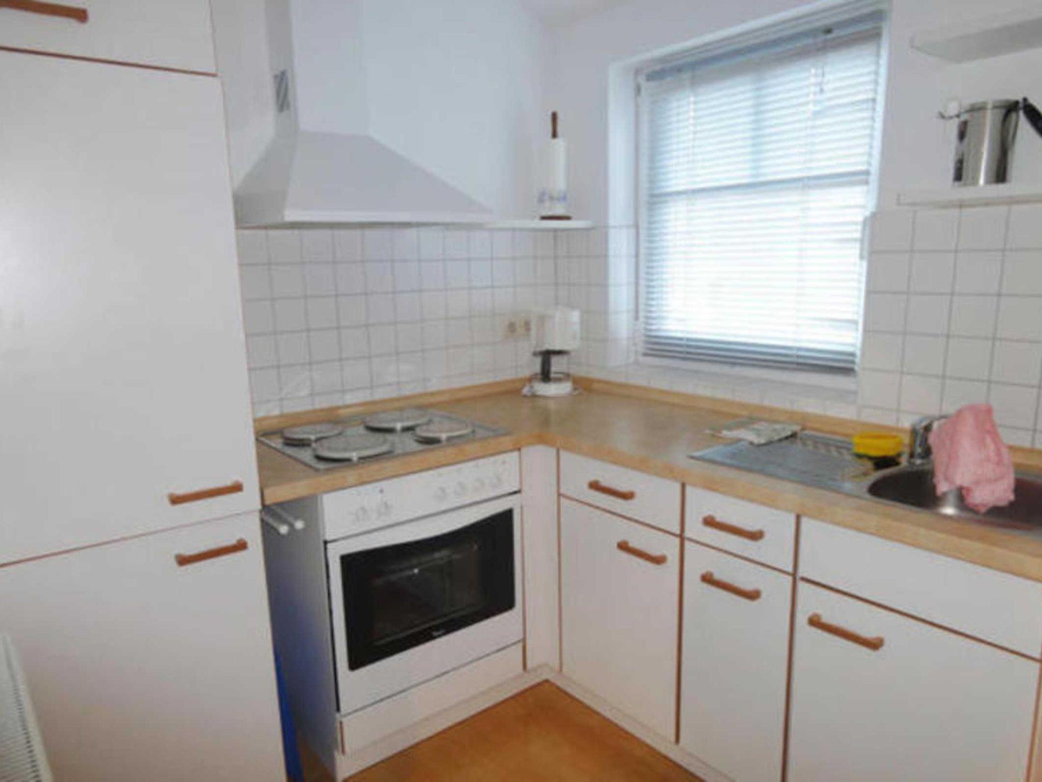 In der Küche finden Sie unter anderem einen Herd mit Ofen, eine Kaffeemaschine, einen Wasserkocher und einen Toaster. Im gefliesten Bad mit Fenster befinden sich die Dusche und das WC.