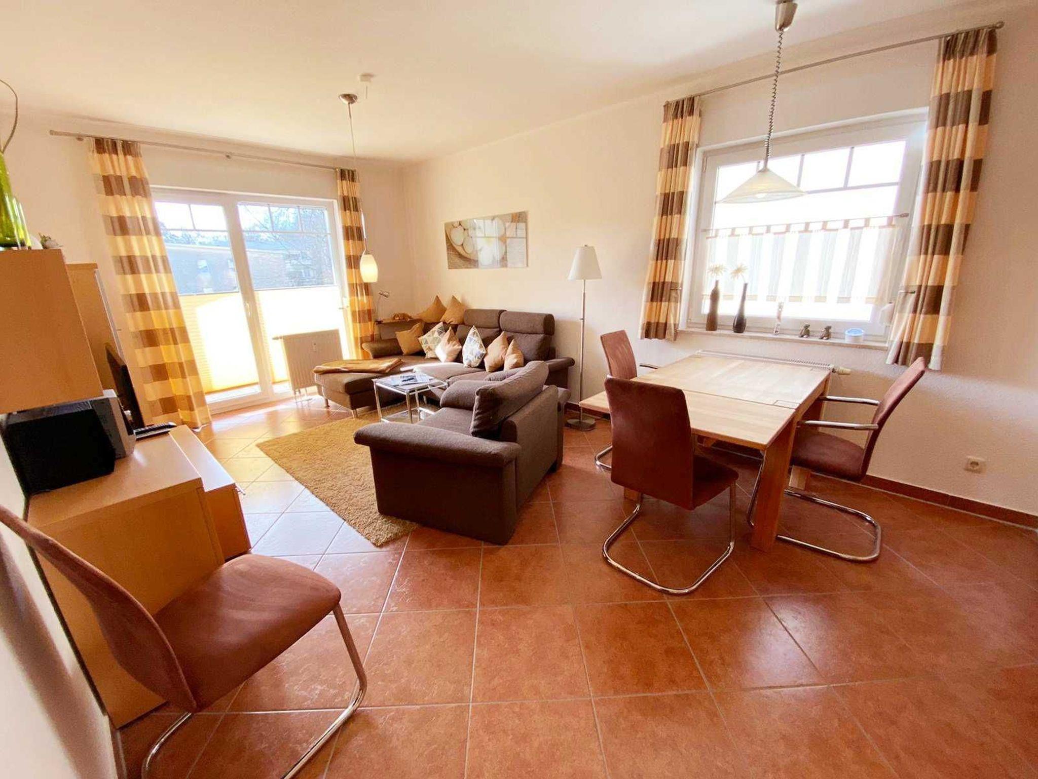 Nur 350m vom Strand entfernt liegt diese gemütlich und modern eingerichtete 2-Raum-Wohnung im 2. OG mit ca. 48 m² Wohnfläche und einem sonnigen Südbalkon. Die sehr helle und freundliche Wohnung kann mit bis zu 2 Personen genutzt werden. Ein gemütliches Schlafzimmer, bieten Platz für 2 Personen. Praktisch erreichbar befindet sich vor dem Objekt ein abschließbarer Außenabstellraum, der Platz für Fahrräder o.ä. bietet. Der Wohnung ist ein kostenloser Stellplatz Nr. 9 zugeordnet. Eine Waschmaschine steht Ihnen hier auch zu Verfügung. Ebenso können Sie das kostenlose Wlan nutzen.