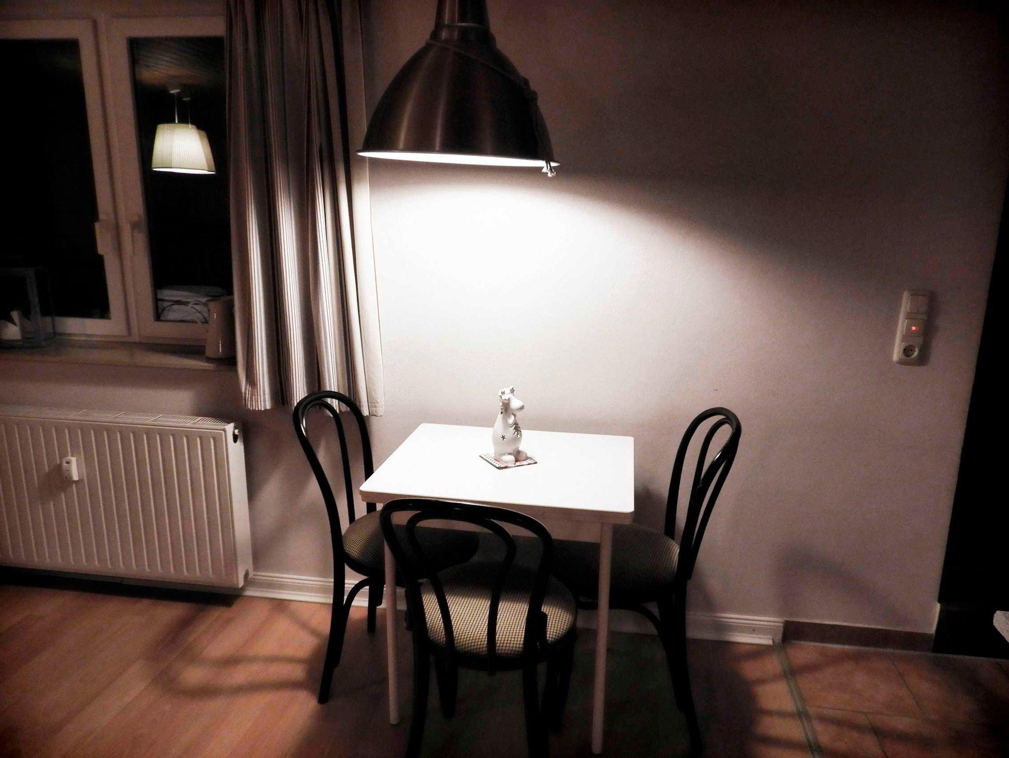 Das Ferienzimmer Kräuterhexe in Graal-Müritz bietet Ihnen ein Doppelbett und ein Einzelbett, ein LCD-TV mit Satellitenempfang sowie einen Schrank und einen Tisch mit drei Stühlen.