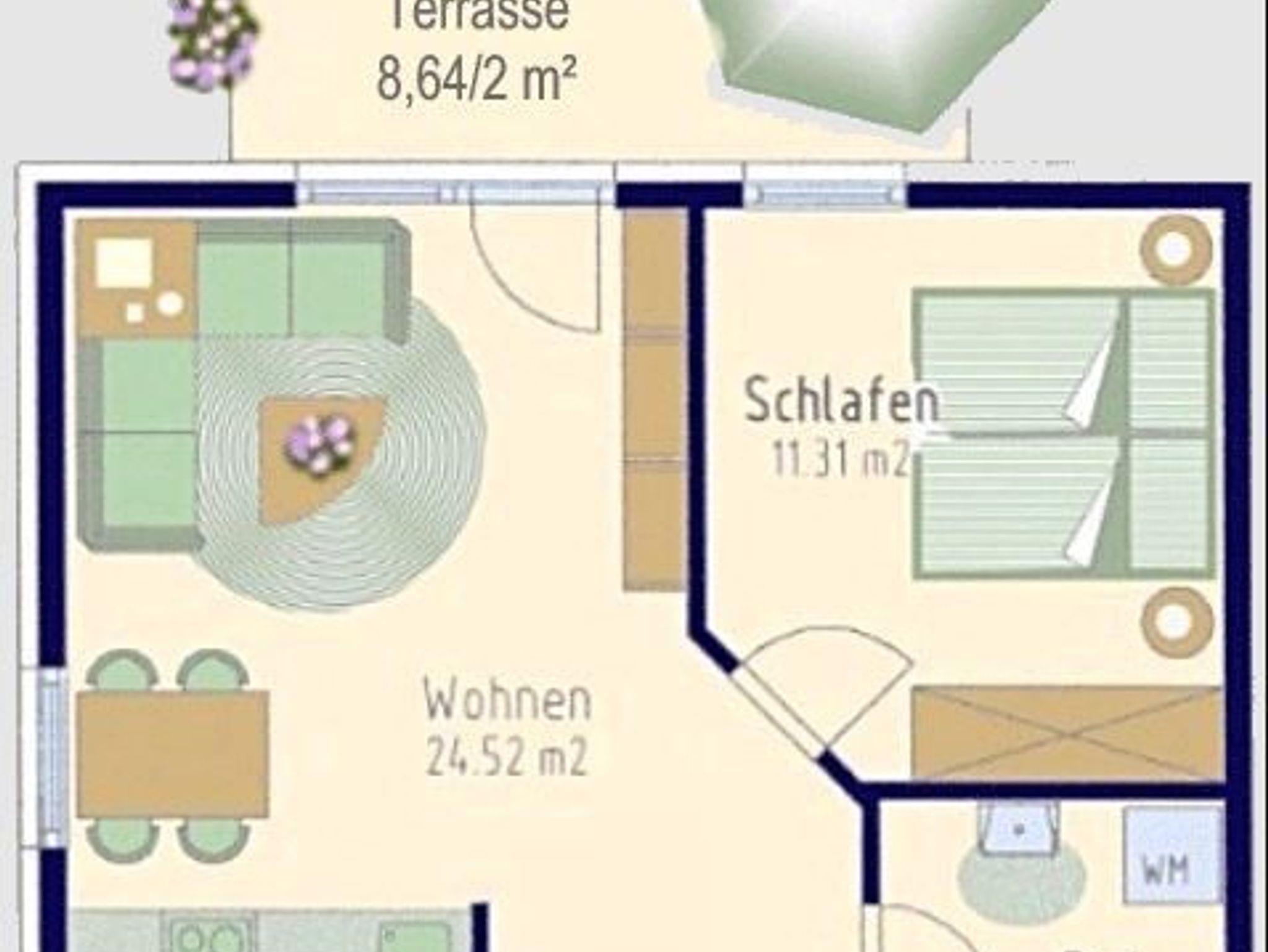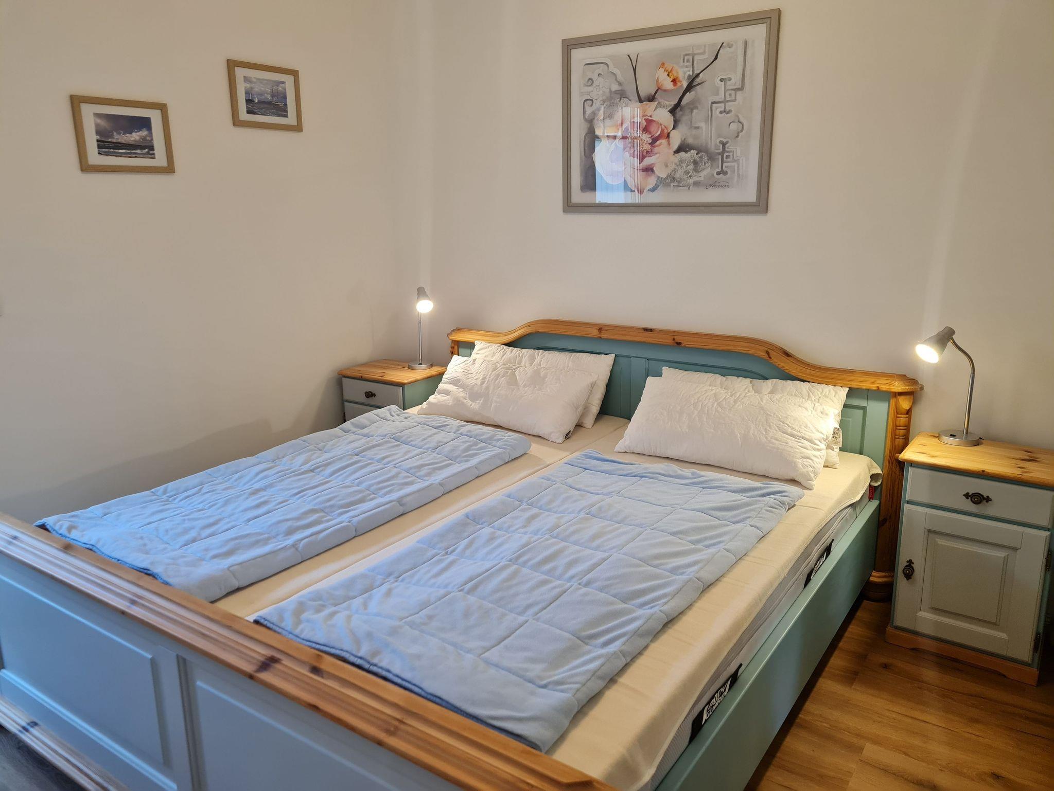 Nur 350m vom Strand entfernt liegt diese gemütlich und modern eingerichtete 2-Raum-Wohnung im Erdgeschoss mit ca. 48 m² Wohnfläche und einer sonnigen Südterrasse. Die sehr hunde- und familienfreundliche Wohnung kann mit bis zu 4 Personen + 1 Kind bis 4 Jahre genutzt werden. Ein separates Schlafzimmer und eine 1,50x2,00 m große Schlafcouch, bieten Platz für 4 Personen. Praktisch erreichbar befindet sich von der Terrasse aus ein abschließbarer Außenabstellraum, der bis zu 4 Fahrrädern Platz o.ä. bietet. Der Wohnung ist ein kostenloser Stellplatz Nr. 1 zugeordnet. WLAN und Waschmaschine stehen kostenlos zu Verfügung.
