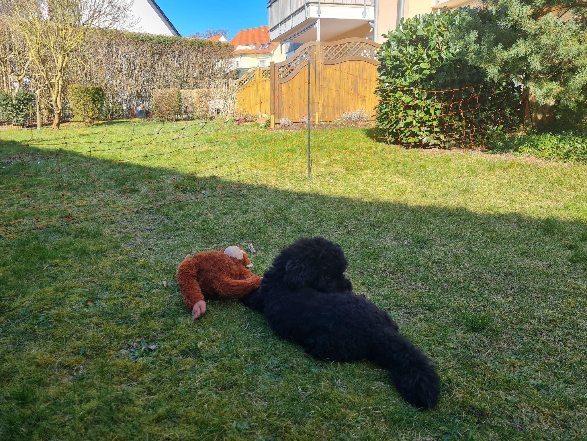• Terrasse: Südausrichtung mit Gartenstück, großer Tisch, 4 Stühle, Sitzbank und Tisch, für ihren Hund können Sie noch ein Netz zum Nachbarn spannen.