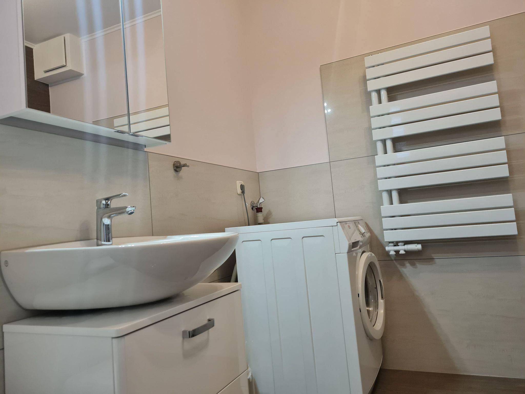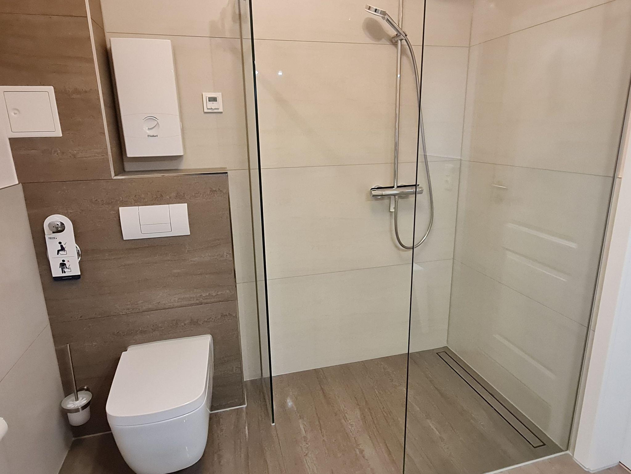 • Bad: ohne Fenster, ebenerdige Dusche, Waschbecken, Toilette mit Dusche, Spiegelschrank, Handtuchheizkörper, Waschmaschine