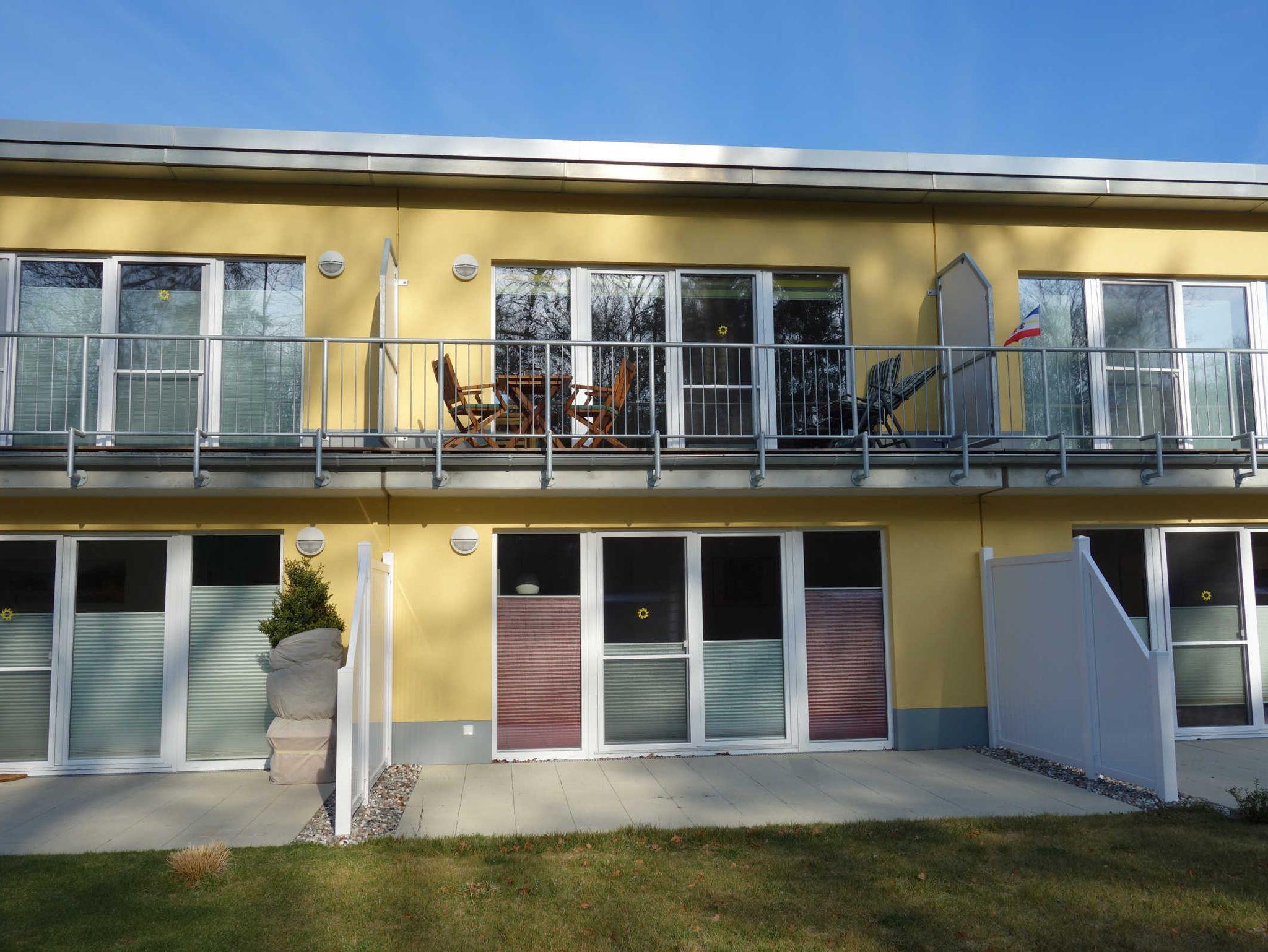 Zu der Ferienwohnung gehören ein Balkon mit Balkonmöbeln und eine Fahrradbox sowie ein Stellplatz für Ihren PKW direkt vor dem Haus.