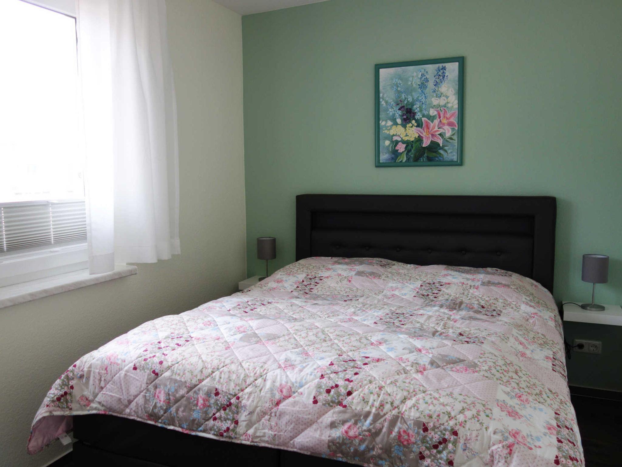 Die 2 Zimmer Ferienwohnung verfügt über ein Wohnzimmer mit einer Couch und einem Fernseher, eine offene Küche und ein Bad mit Dusche / WC. Zu der Ferienwohnung gehören außerdem ein PKW-Stellplatz und ein Balkon sowie ein abschließbarer Fahrradschuppen.