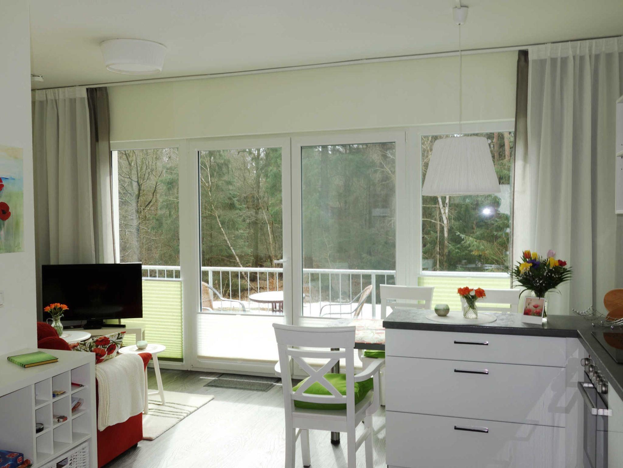 Es erwartet Sie eine 38 m² große 2-Raum-Wohnung mit integrierter Küche im 1. Obergeschoss mit einem 5 m langen Balkon. Genießen Sie dort die Morgensonne und den Tagesausklang vor unverbaubarem Waldblick. Das Schlafzimmer verfügt über ein 160 cm breites Doppelbett und einen Kleiderschrank. Im Bad finden Sie Dusche und WC vor. Zur Wohnung gehören ein PKW-Stellplatz sowie ein kleiner Schuppen.