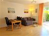 • Wohnzimmer: 2-Sitzer Schlafcouch 140 x 200 m, Sessel, TV-Flachbild, DVD-Player, TV-Bank, Glastisch, Radio, Leselampe