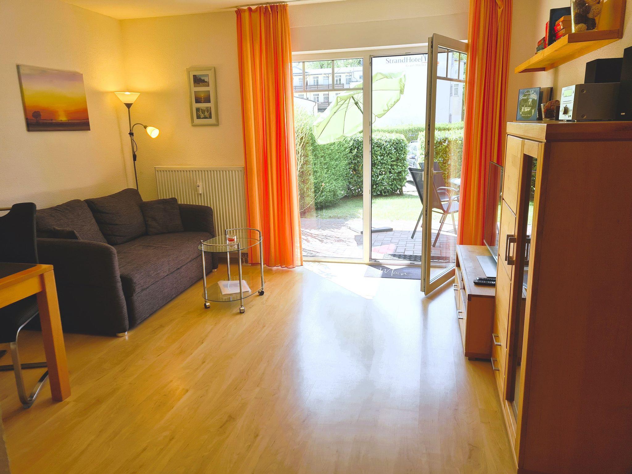 Nur 350m vom Strand entfernt liegt diese gemütlich und modern eingerichtete 2-Raum-Wohnung im Erdgeschoss mit ca. 48 m² Wohnfläche und einer sonnigen Südterrasse. Die sehr helle und familienfreundliche Wohnung kann mit bis zu 3 Personen genutzt werden. Ein separates Schlafzimmer und eine 1,40x2,00 m große Schlafcouch, bieten Platz für 3 Personen. Praktisch erreichbar befindet sich neben dem Objekt ein Abstellraum (innenliegend), der Platz für Fahrräder o.ä. bietet. Der Wohnung ist ein kostenloser Stellplatz Nr. 25 zugeordnet. WLAN steht Ihnen kostenlos zu Verfügung.
