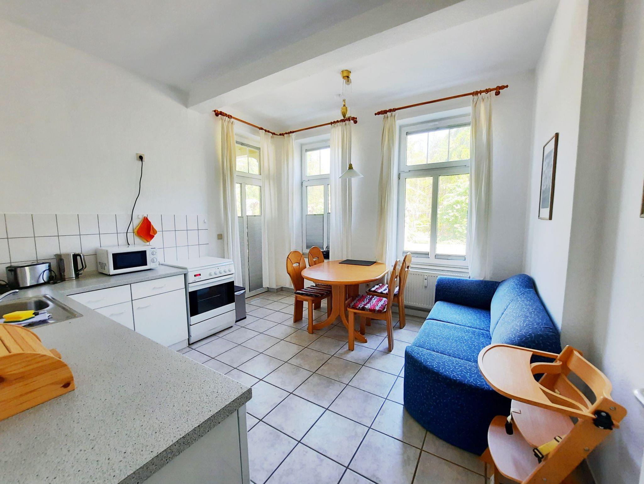 Die Ferienwohnung ist bestens für 2 bis 3 Personen geeignet und erwartet Sie mit einem gemütlichen Wohn- und Schlafbereich mit Doppelbett und Flachbild--Fernseher. Die separate Küche verfügt unter anderem über einen Herd, eine Kaffeemaschine und einen Wasserkocher und ist mit 4 Stühlen ausgestattet. Im Bad befindet sich das WC, ein Waschbecken und eine Badewanne. Der schöne Balkon mit Blick auf den Küstenwald ist von der Küche aus begehbar. Um das Haus Reinhild herum befindet sich eine Grünfläche, welche Sie mitbenutzen dürfen. Im Schuppen auf dem Gelände finden Sie Gartenmöbel für den Balkon. Ihren PKW parken Sie bequem auf dem Grundstück.
