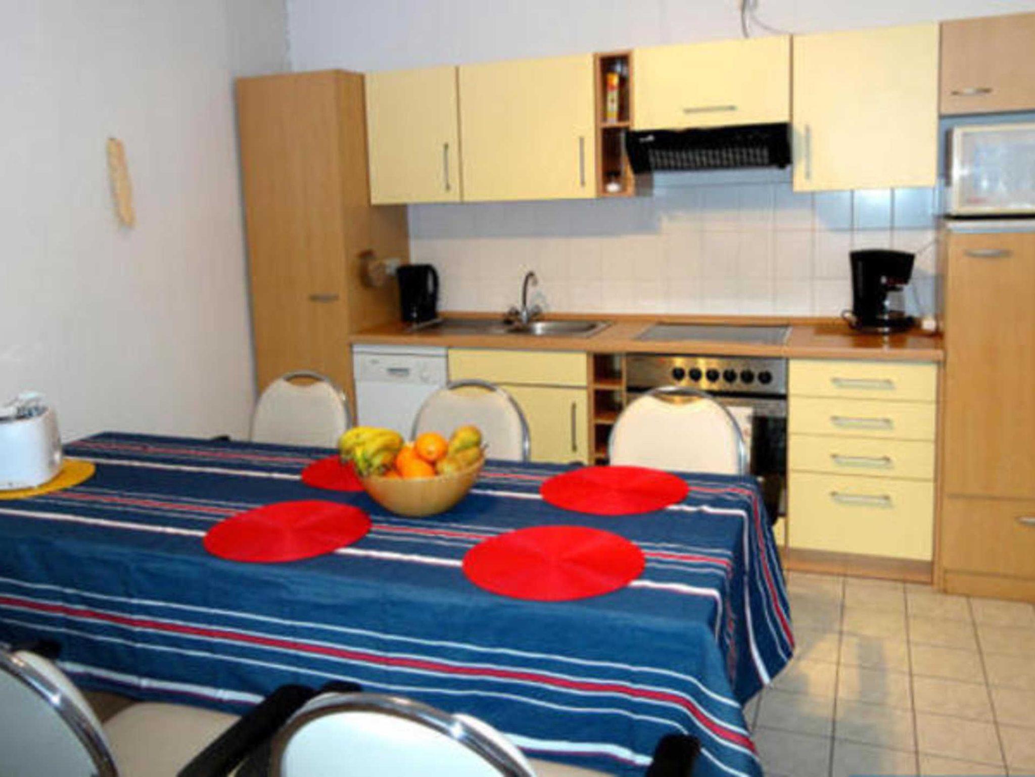 Die Küche mit einer Essecke ist in das Wohnzimmer integriert und ist unter anderem mit einem Cerankochfeld, einer Backröhre, einer Geschirrspülmaschine, einem Kühlschrank, einer Mikrowelle, einem Wasserkocher und einer Kaffeemaschine ausgestattet.