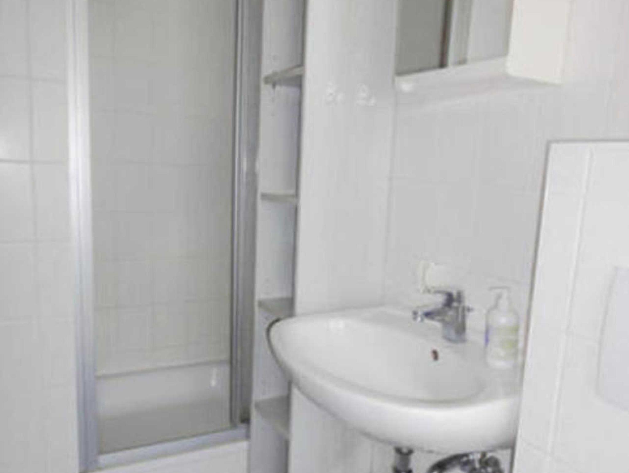 Im Bad mit Fenster befinden sich die Dusche und das WC.