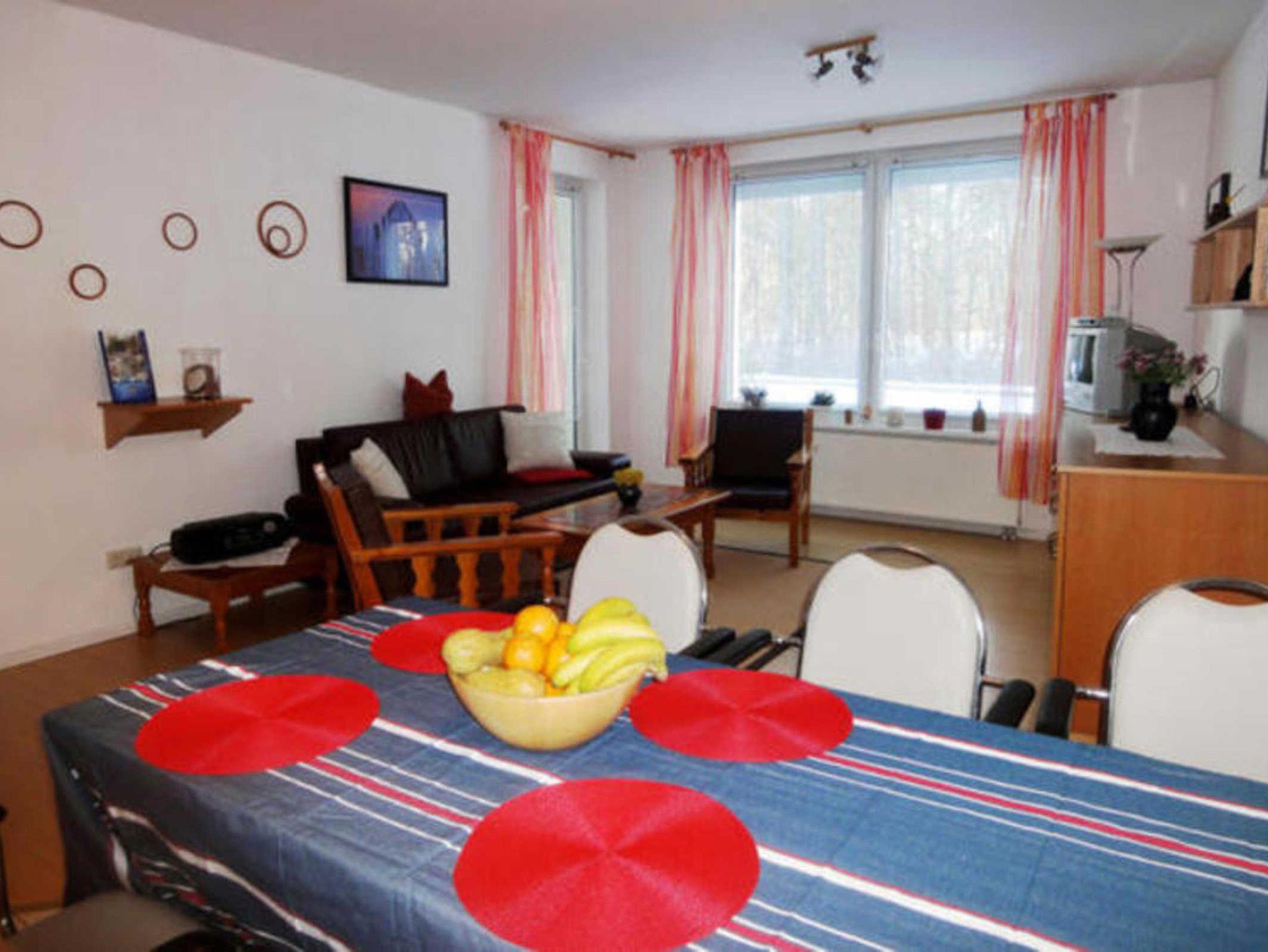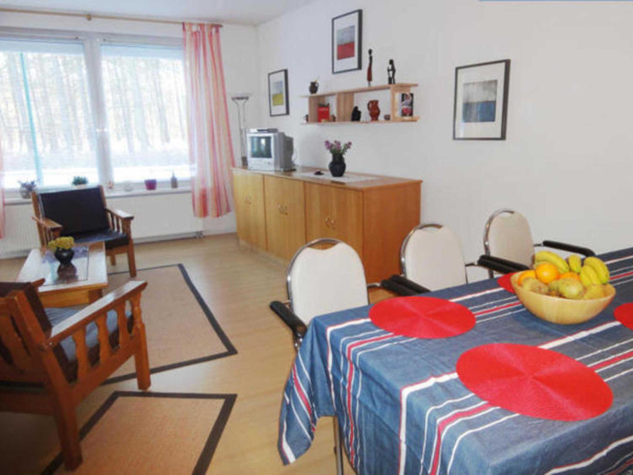 Ihre Ferienwohnung ist etwa 50 qm groß und für 2 bis 3 Personen geeignet. Das gemütliche Wohnzimmer mit großem Fenster ist mit einer Couch, 2 Sesseln sowie einem Fernseher und einem Radio ausgestattet.