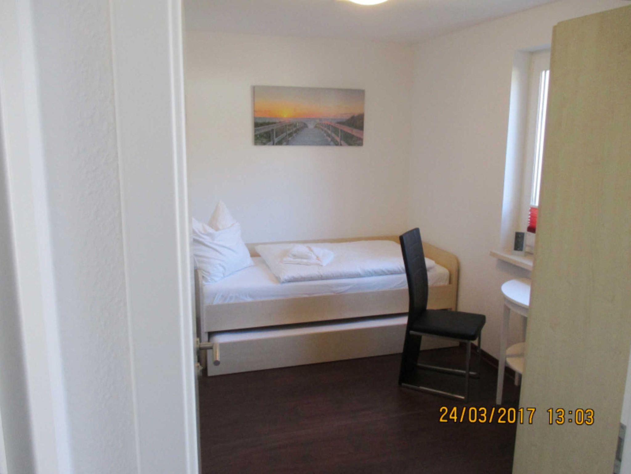 Diese Zimmerkombination mit eigenem Hauseingang verfügt über einen kleinen Flur und zwei getrennt zu begehende Doppelzimmer. Mit je einem Fernsehgerät und jeweils einem Duschbad sind die beiden Zimmer ausgestattet. Das größere Zimmer (22 m² ) hat eine intergrierte Mini-Küche. Von diesem Zimmer gelangt man auf die Terrasse mit angrenzender Grünfläche.