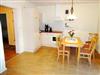 Die Küche mit einer Essecke ist in das Wohnzimmer integriert und ist unter anderem mit 4 Ceranfeldern, einer Backröhre, einer Geschirrspülmaschine, einem Kühlschrank, einem Wasserkocher und einer Kaffeemaschine ausgestattet.