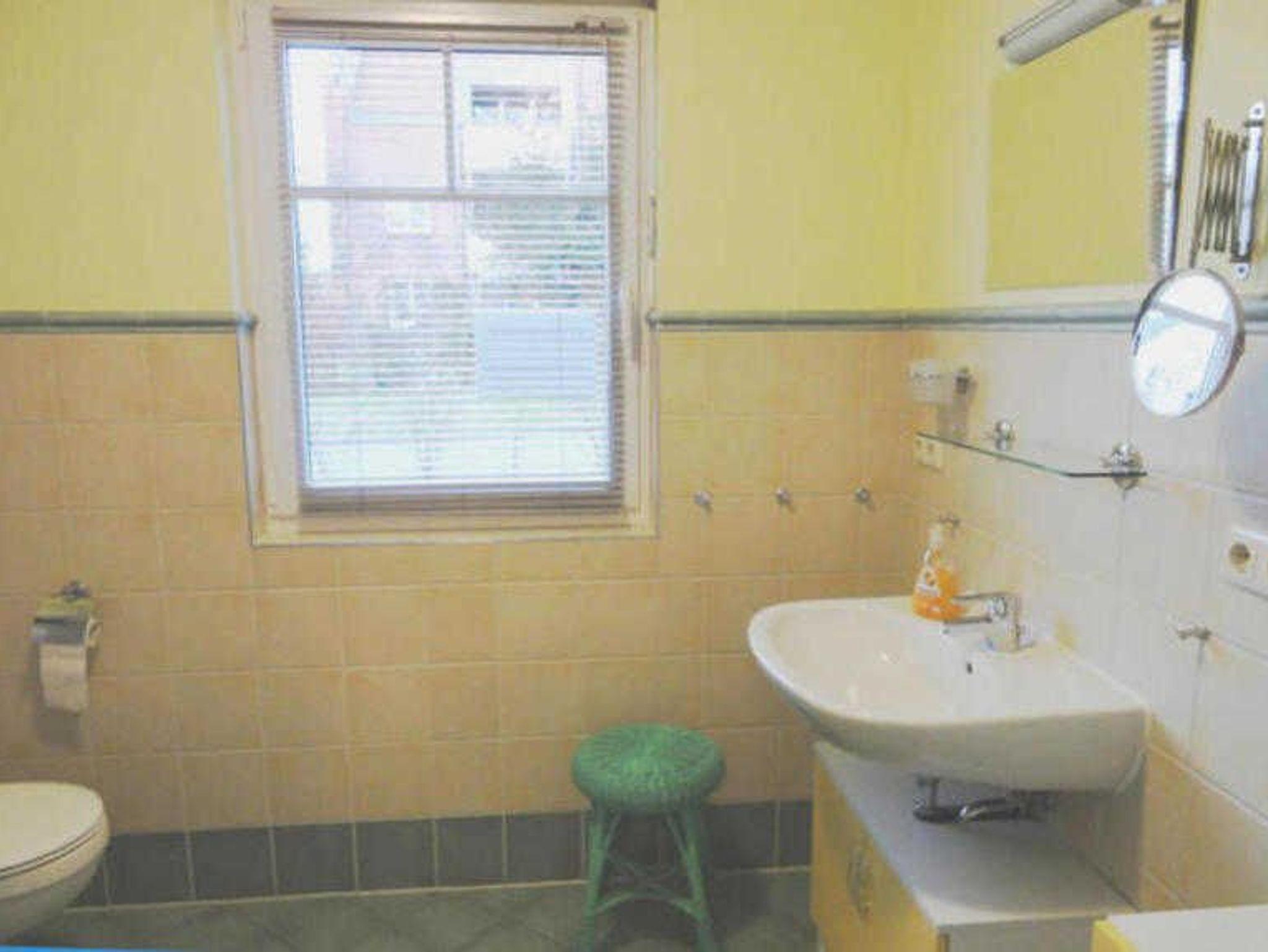 Im Bad mit Fenster befinden sich die Dusche und das WC.