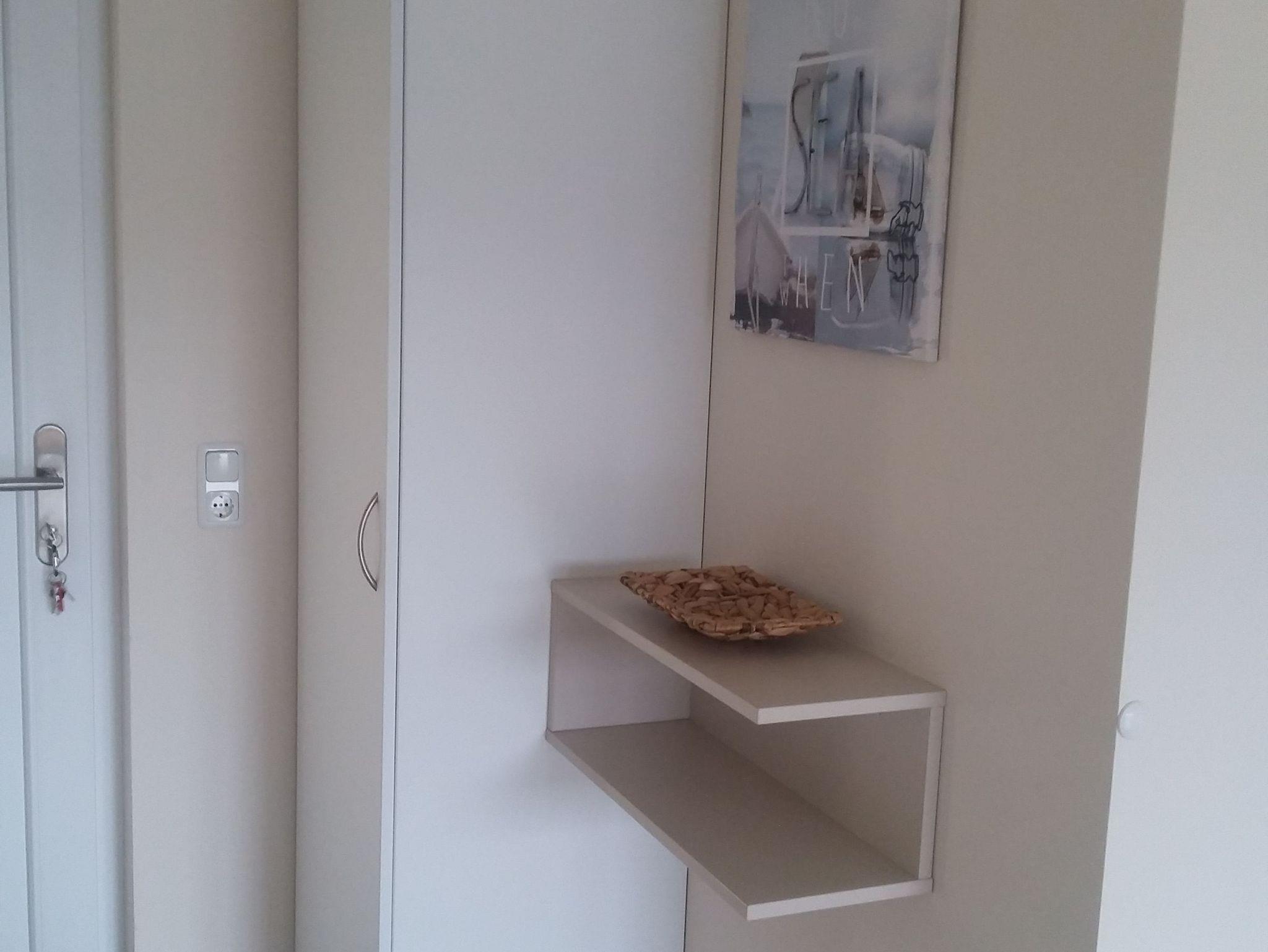 Der Balkon, ca. 6qm, wurde mit Holzdielen belegt. Ein Staubsauger ist in der Wohnung vorhanden. Draußen, neben der Wohnung befindet sich ein abschließbarer Abstellraum für Fahrräder etc.