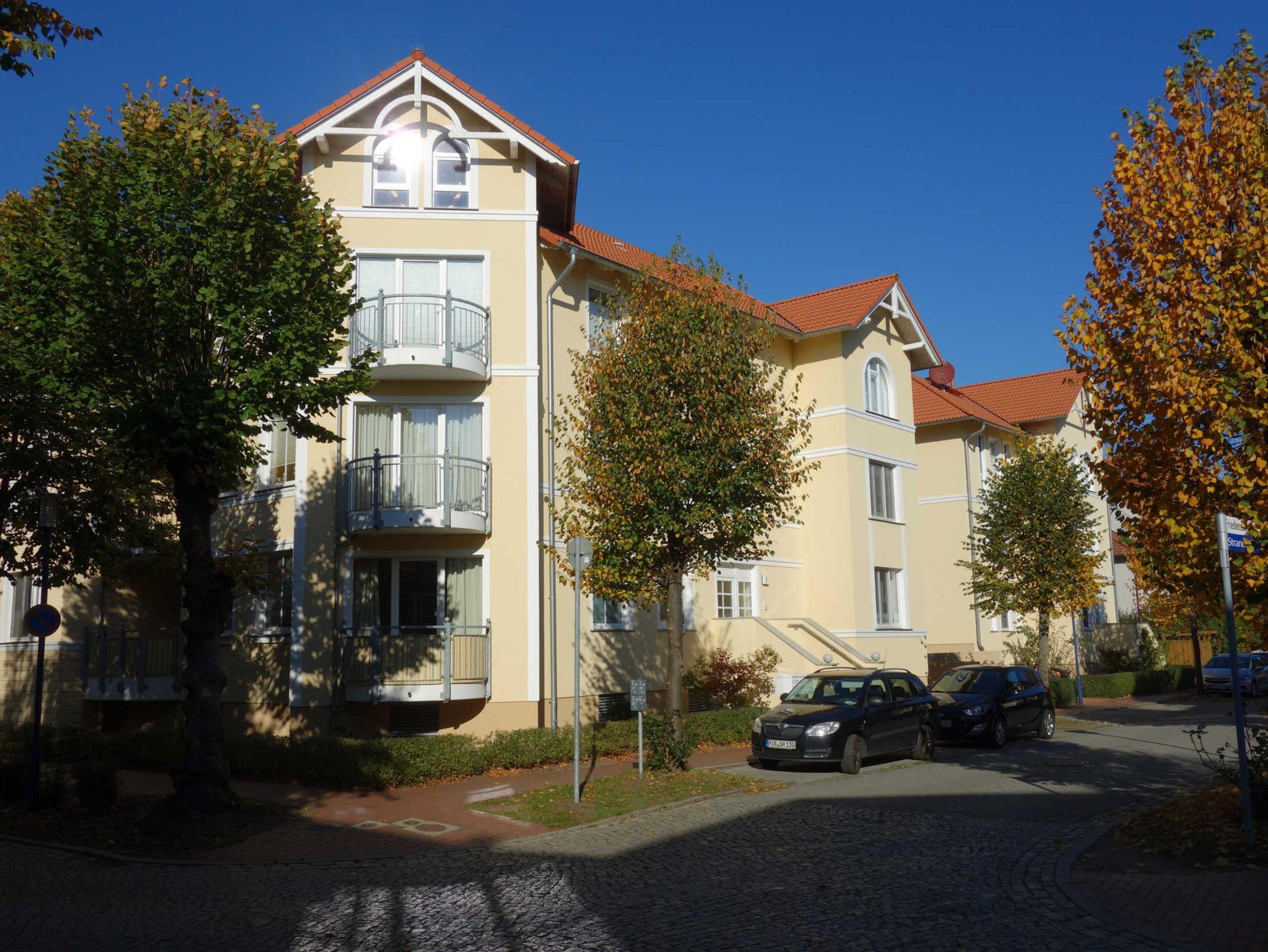 Zu der Ferienwohnung gehören ein Balkon ind ein PKW-Stellplatz in der Tiefgarage.