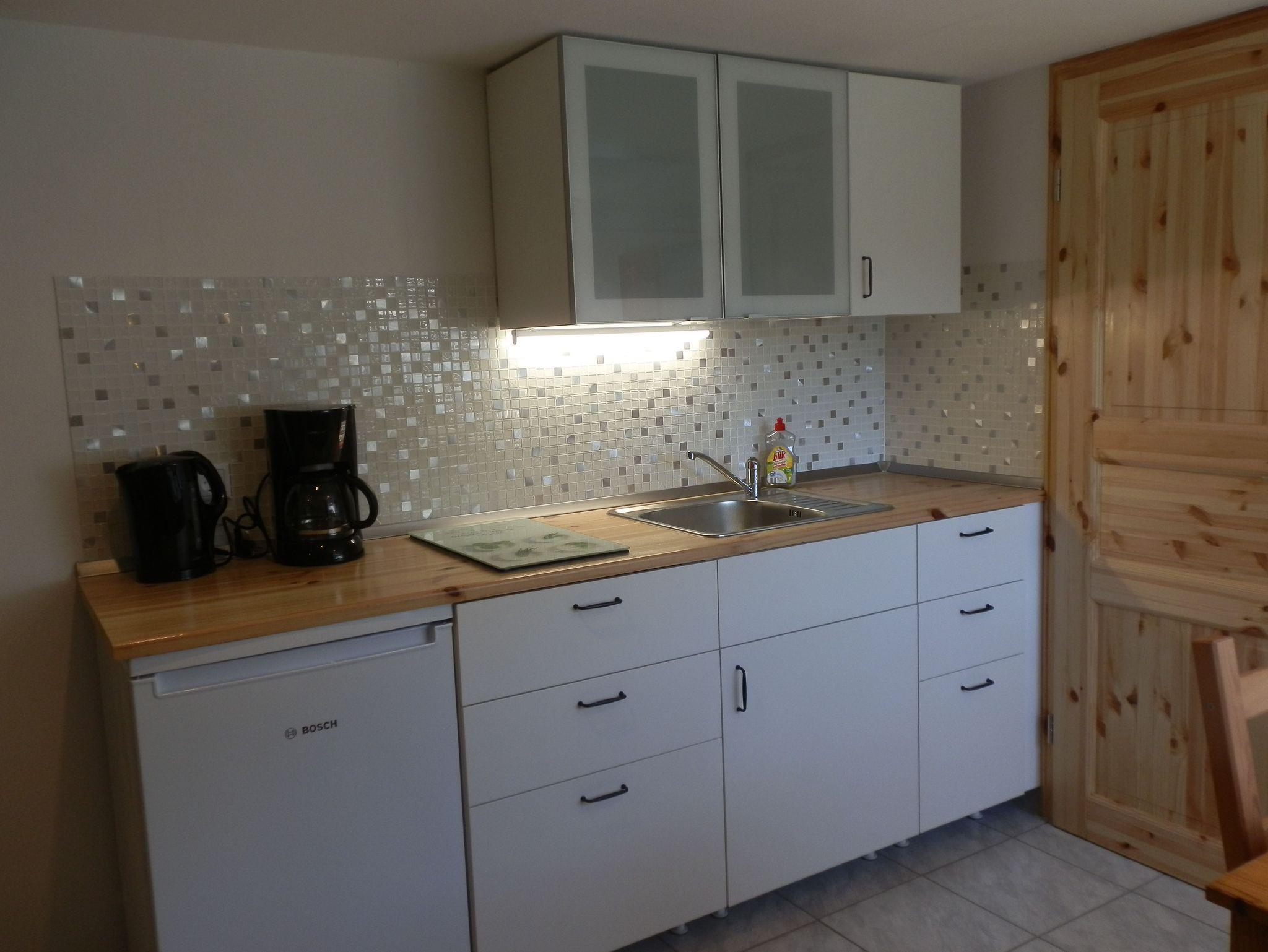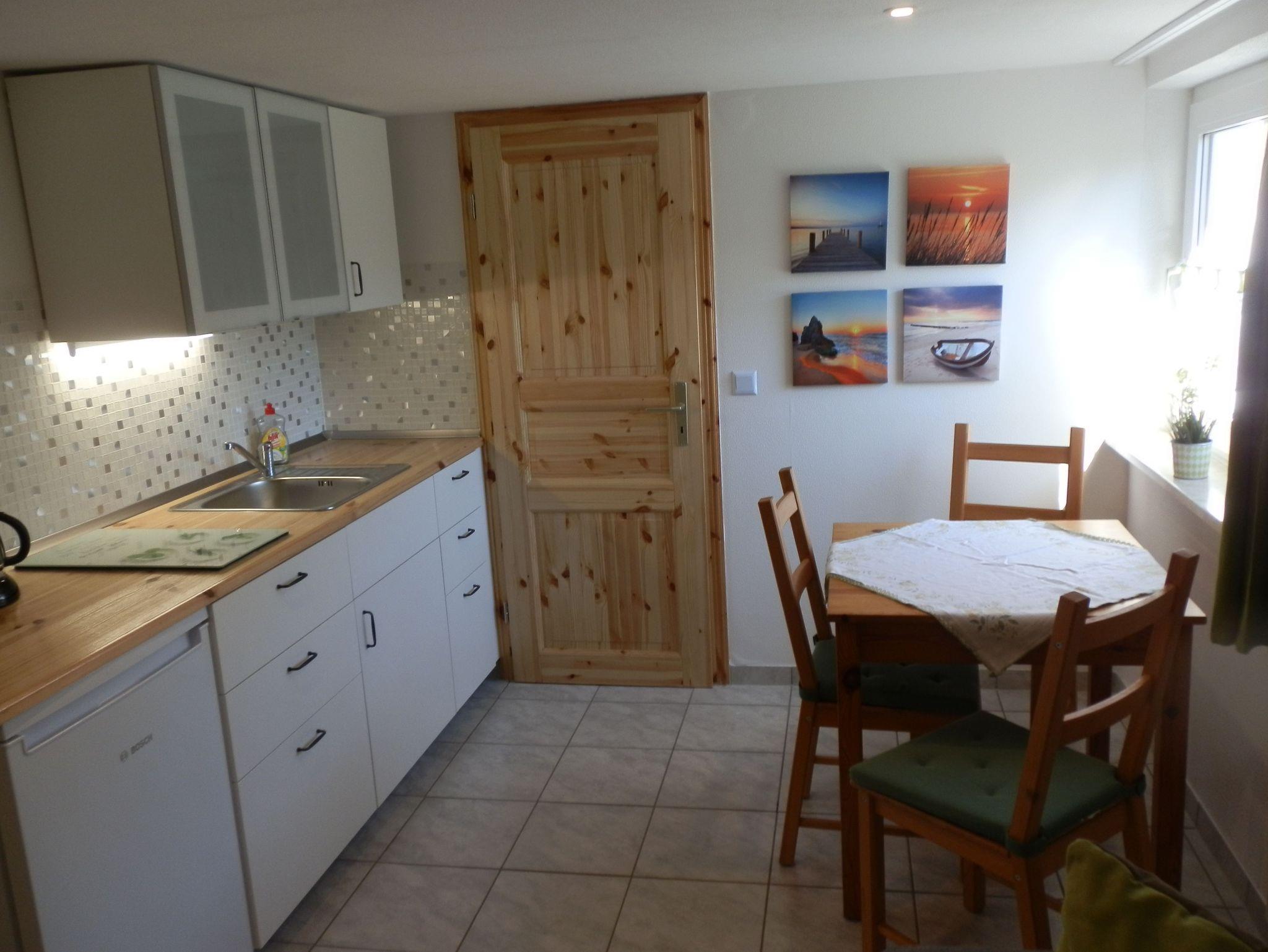 • Die Ferienwohnung II befindet sich im Souterrainbereich des Hauses, ist 35 qm groß und bietet Platz für bis zu 3 Personen. Hier stehen Ihnen ein Wohnzimmer mit Sofa und kleiner Sitzecke, eine offene Küchenzeile mit Cerankochfeld, ein Kühlschrank mit Tiefkühlfach und diverses Kücheninventar zur Verfügung.