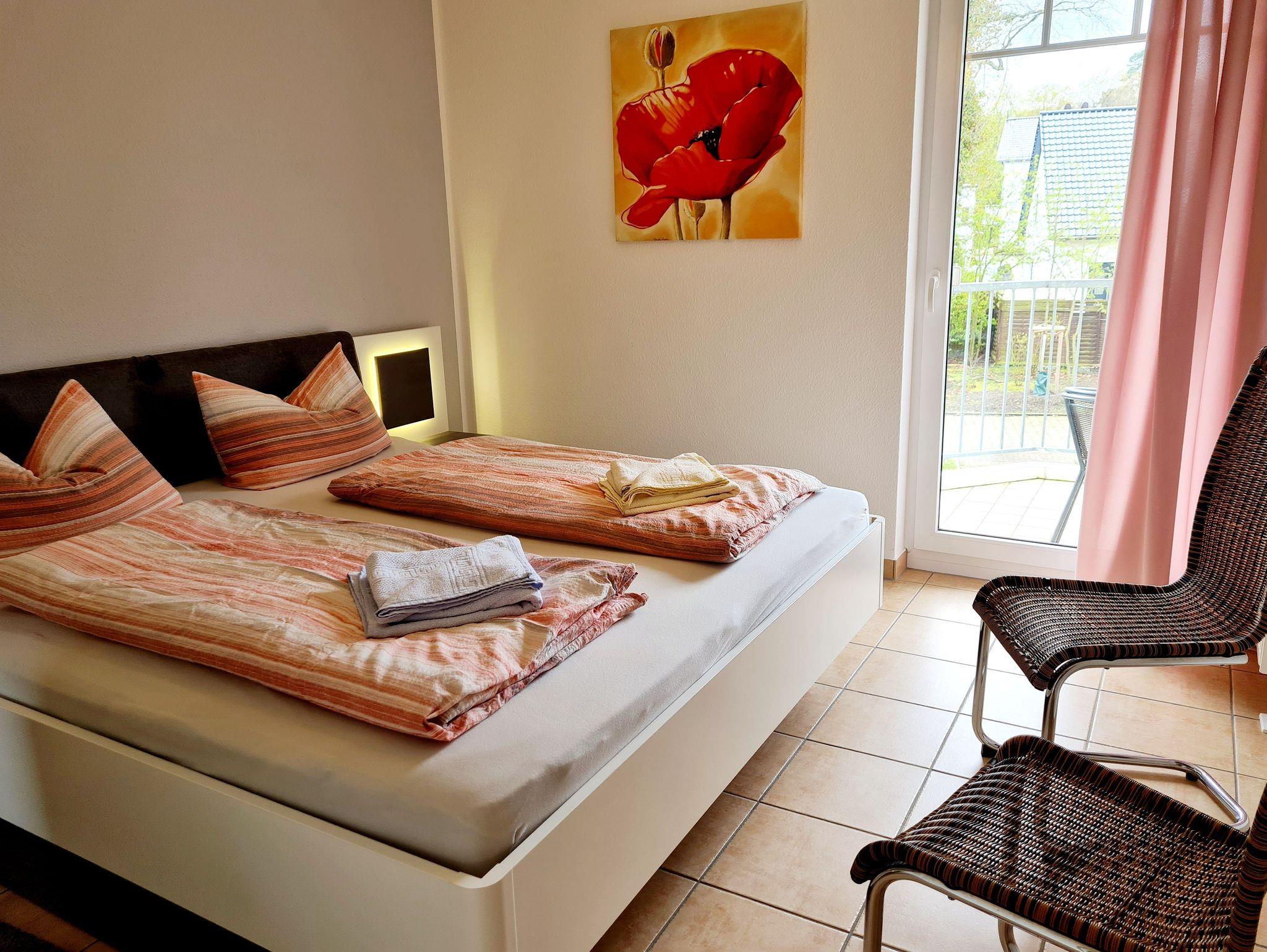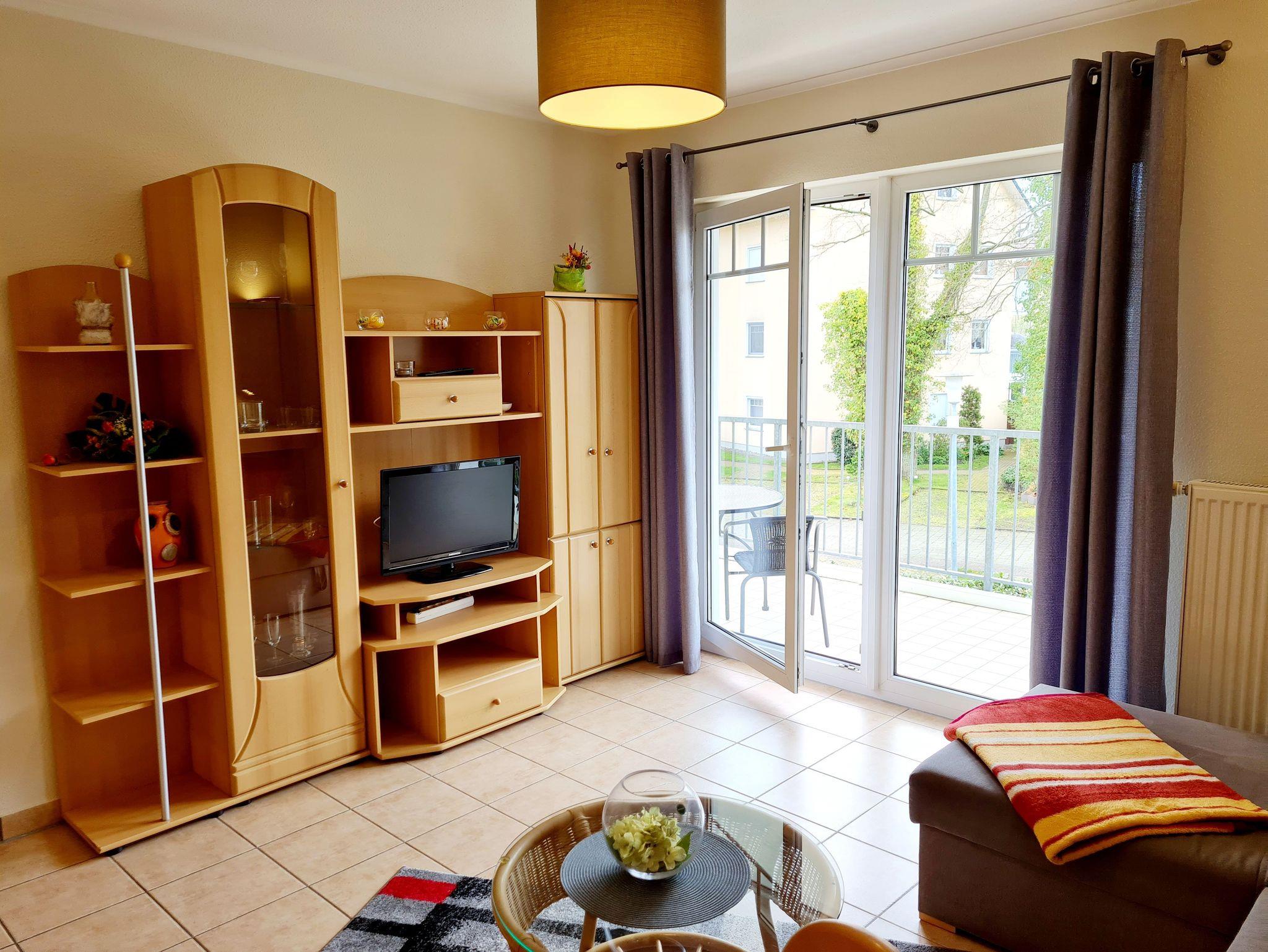 Nur 350m vom Strand entfernt liegt diese gemütlich eingerichtete 2-Raum-Wohnung im 1. OG mit ca. 48 m² Wohnfläche und einem sonnigen Südbalkon. Die sehr helle und freundliche Wohnung kann mit bis zu 3 Personen genutzt werden. Ein separates Schlafzimmer und eine gemütliche Schlafcouch bieten Platz hierfür. Praktisch erreichbar befindet sich vor dem Objekt ein abschließbarer Außenabstellraum, der Platz für Fahrräder o.ä. bietet. Ebenso ist der Wohnung ein kostenloser Stellplatz Nr. 23 zugeordnet. Das kostenloses WLAN steht Ihnen hier auch zur Verfügung.