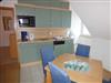 Die in das Wohnzimmer integrierte Küche hat einen einen Geschirrspüler, 2 Ceranfelder, einen Kühlschrank sowie einen Esstisch mit 3 Stühlen.