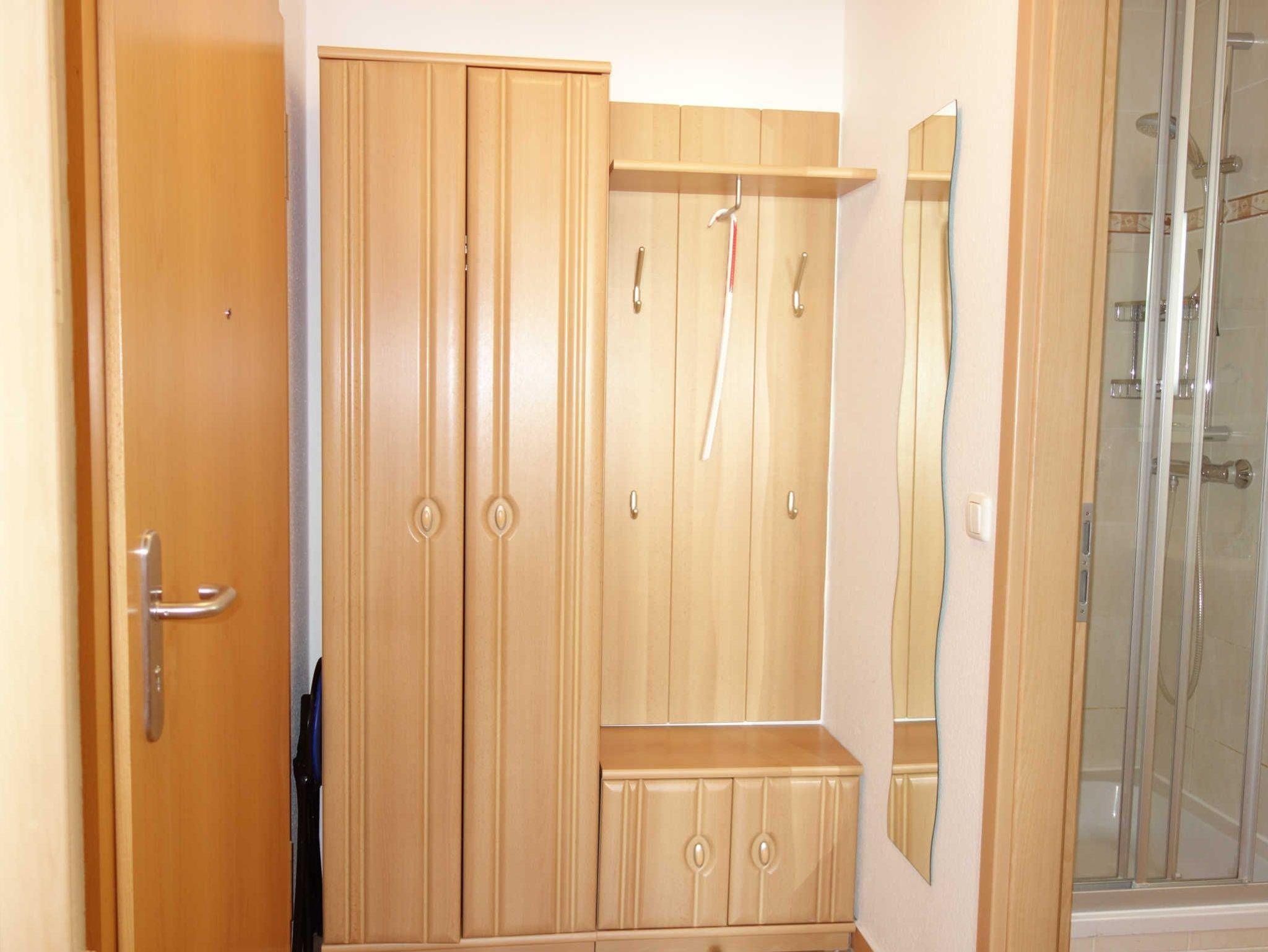 Die Ferienwohnung verfügt über ein Wohnzimmer mit integrierter Küchenzeile, ein Schlafzimmer, ein Bad, 2 Balkone, einen kleinen Flur, einen PKW-Stellplatz und einen Fahhradschuppen.
