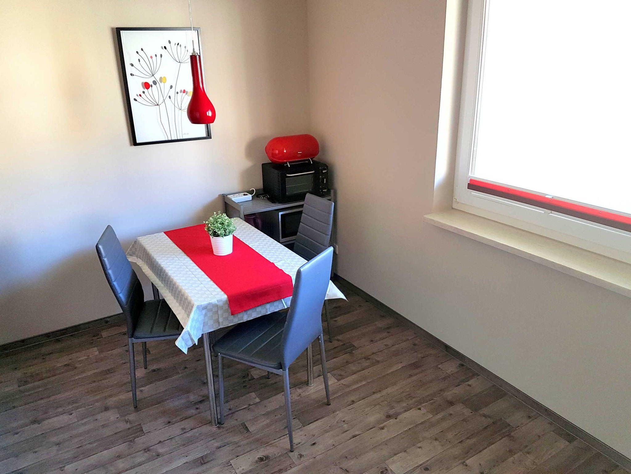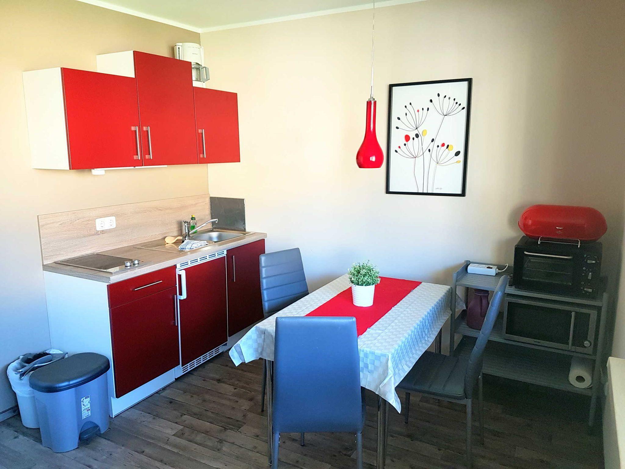 Die Küche ist u.a. mit Kaffeemaschine, Mikrowelle, Ceran-Kochplatten und Mini-Backofen ausgestattet. Im Wohnzimmer gibt es einen Flachbild-TV. In der gesamten Wohnung steht Ihnen Internet per Wlan zur freien Verfügung.