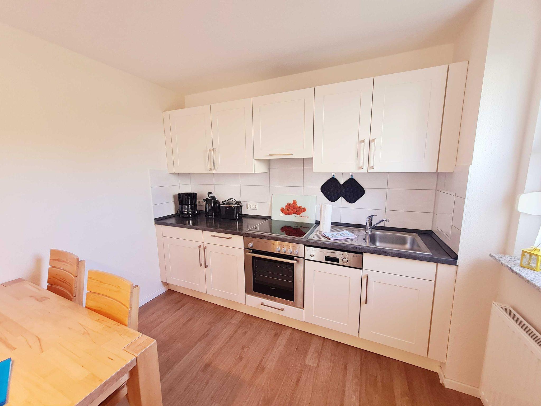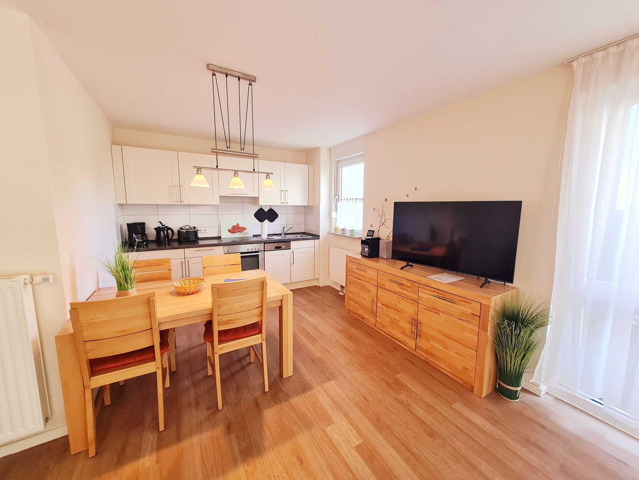 • Küche und Essbereich für 4 Personen offen zum Wohnzimmer, komplett eingerichtete