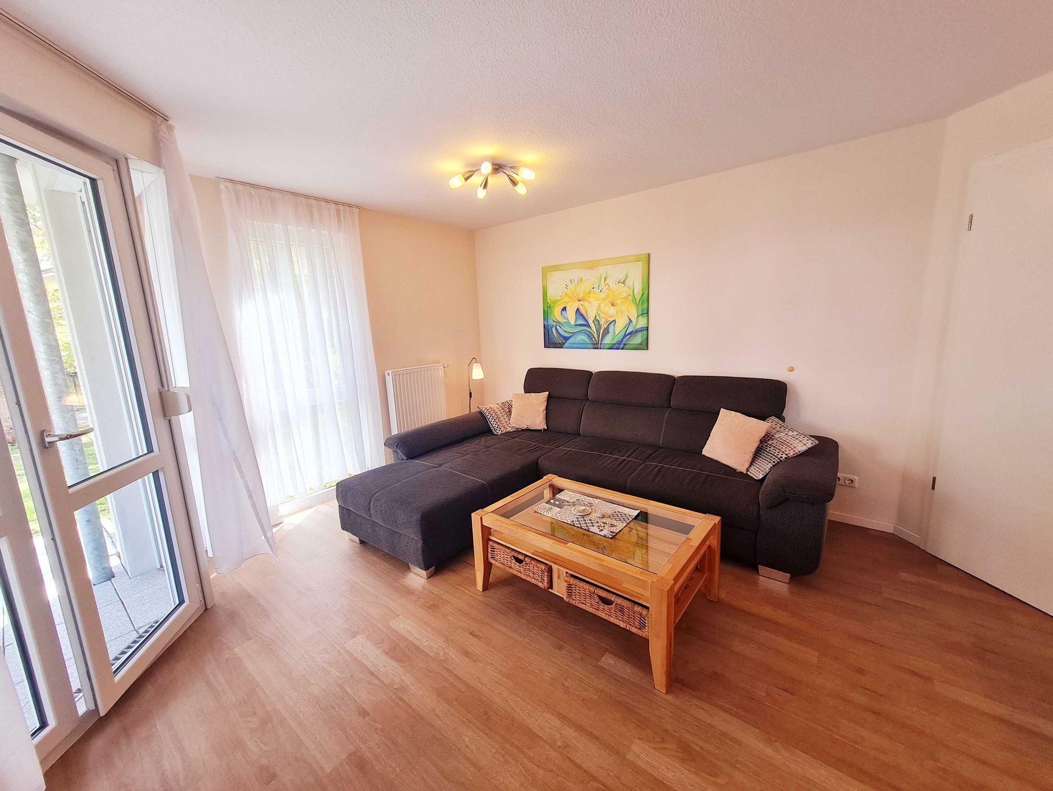 Nur 100m vom Strand entfernt liegt diese gemütlich und modern eingerichtete 2-Raum-Wohnung im Erdgeschoss mit ca. 52 m² Wohnfläche und einer sonnigen Nordostterrasse. Die sehr familienfreundliche Wohnung kann mit bis zu 3 Personen ( zusätzliches Kleinkind auf Anfrage) genutzt werden. Ein separates Schlafzimmer und eine 1,60x2,00 m große Schlafcouch, bieten Platz für 3 Personen. Praktisch erreichbar befindet sich im Haus ein Fahrradkeller der Platz für Fahrräder o. ä. bietet. Der Wohnung ist ein kostenloser Stellplatz Nr. 28 zugeordnet. Ebenso können Sie das kostenlose WLAN nutzen. Waschmaschine und Trockner stehen gegen Entgelt zur Verfügung.