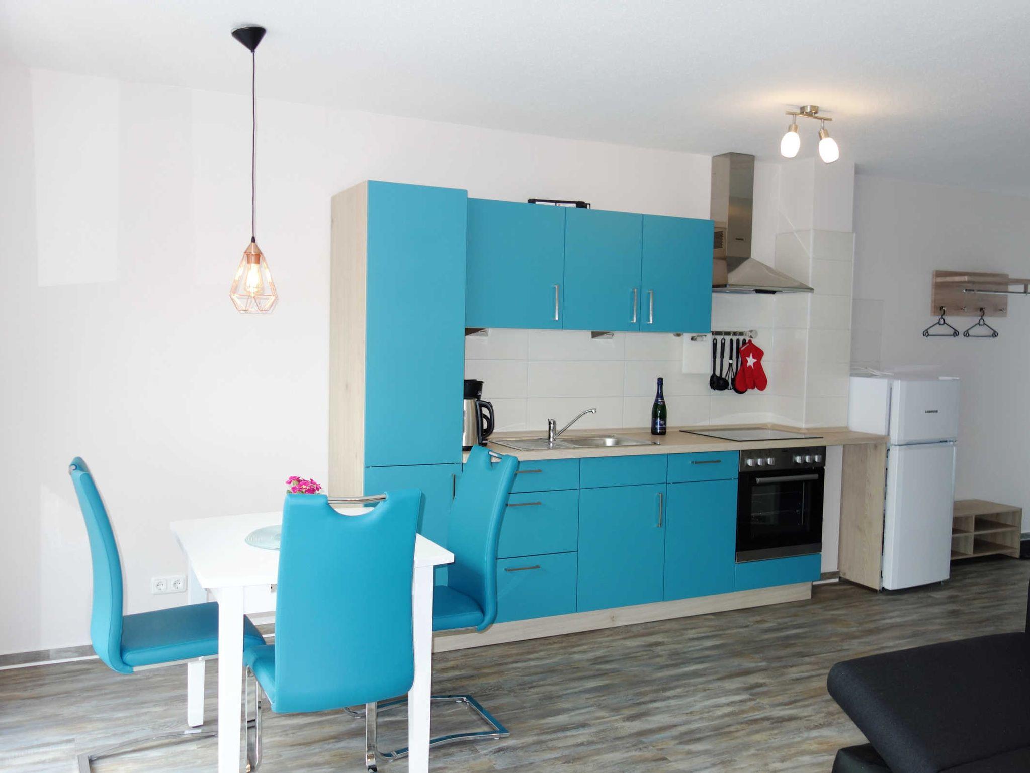 In der komplett ausgestatteten Küche finden Sie u.a. ein Cerankochfeld mit 4 Kochfeldern, eine Kühl-Gefrierkombination, einen Geschirrspüler, einen Backofen, einen Wasserkocher und eine Kaffeemaschine.