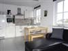 Die offene Küche mit Esstisch und 2 Stühlen plus einer Essbank ist in das Wohnzimmer integriert und ist unter anderem mit einem Backofen, einem Cerankochfeld mit 4 Kochfeldern, einem Kühlschrank mit Gefrierfach, einer Geschirrspülmaschine sowie einem Wasserkocher und einer Kaffeemaschine ausgestattet.