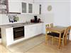 Im integrierten Küchenbereich befinden sich unter anderem ein Herd mit 4 Ceranfeld-Kochplatten, ein Ofen, ein Kühlschrank, eine Kaffeemaschine und ein Wasserkocher.