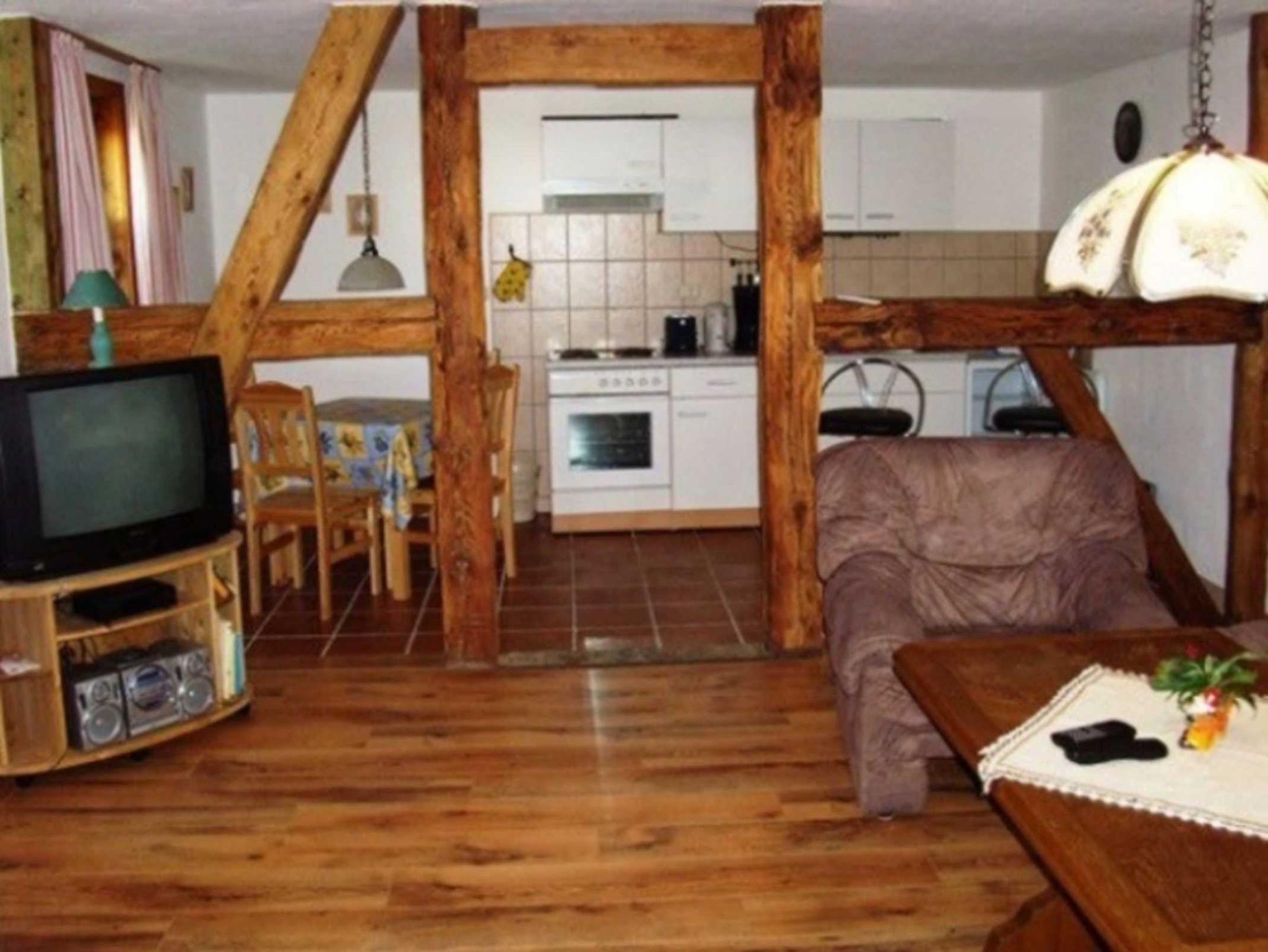 Die Fewo befindet sich in einem Fachwerkhaus mit Schilfdach. Es ist eine gemütlich eingerichtete 2-Zimmer-Wohnung mit Bad, Schlafzimmer mit Alkoven. Zur Fewo gehört ein Pkw-Stellplatz und eine große Terrasse auf dem Hof, auf der gegrillt werden kann.