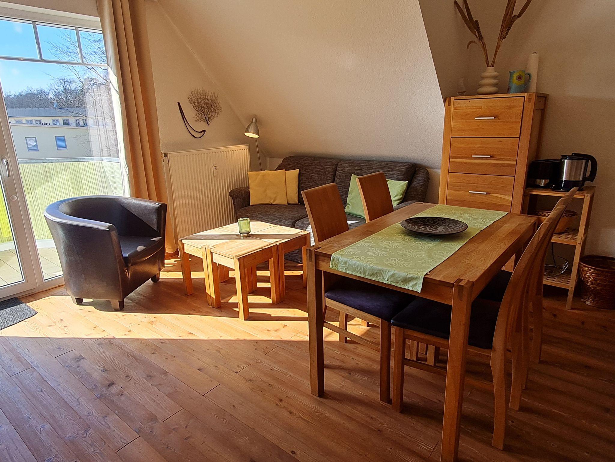Nur 350m vom Strand entfernt liegt diese gemütlich und modern eingerichtete 3-Raum-Maisonette-Wohnung (offene Galerie) im 3. OG mit ca. 55 m² Wohnfläche und einem sonnigen Südbalkon. Die sehr familienfreundliche Wohnung kann mit bis zu 4 Personen genutzt werden (zusätzlich 1 Kind auf Anfrage). Zwei separate Schlafzimmer, bieten Platz für 4 Personen. Praktisch erreichbar befindet sich vor dem Objekt ein abschließbarer Außenabstellraum, der 2x kostenlose 28-er Damenfahrräder und einen Bollerwagen beinhaltet. Der Wohnung ist ein kostenloser Stellplatz Nr. 11 zugeordnet. WLAN und eine Waschmaschine stehen Ihnen ebenso kostenlos zu Verfügung.