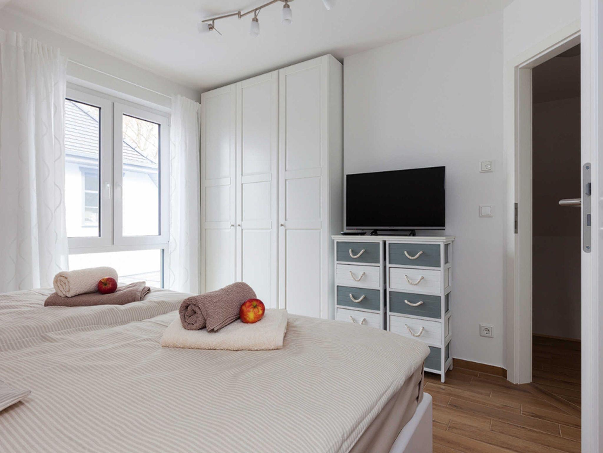 • Schlafzimmer I + II: Schlafzimmer I+II: Doppelbett (180x200 cm) - mit beliebten Bett 1 Matratzen, Matratzenauflage, Lattenrost mit Kopf- und Fußteil verstellbar, Kleiderschrank mit ausreichend Raum, 32 Zoll Full HD LED TV mit integrierten W-Lan