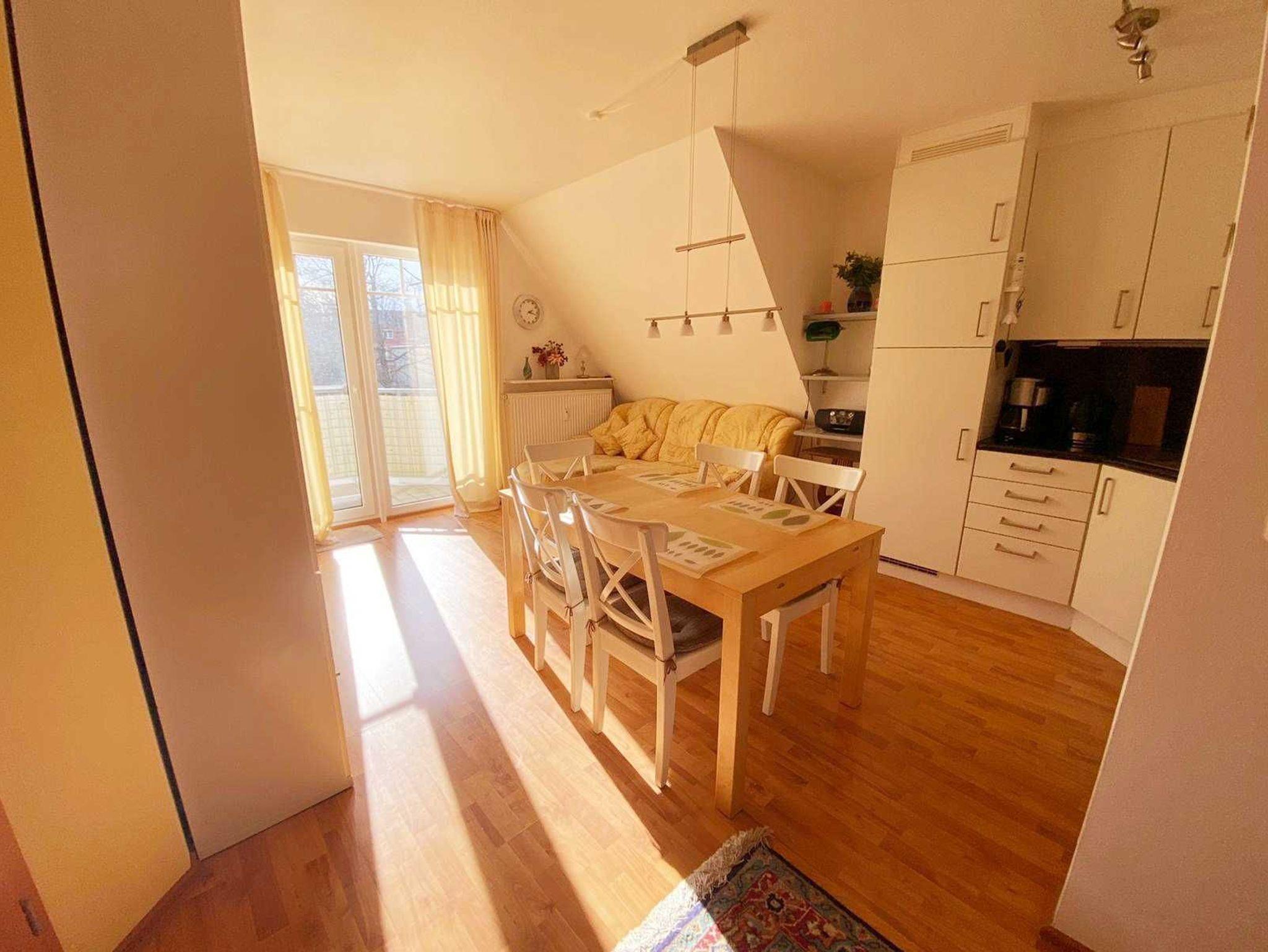 Nur 350m vom Strand entfernt liegt diese gemütlich und modern eingerichtete 3-Raum-Maisonette-Wohnung im 2. Obergeschoss mit ca. 55 m² Wohnfläche und einem sonnigen Südbalkon. Die sehr familienfreundliche Wohnung kann mit bis zu 4 Personen genutzt werden.(5. Person auf Anfrage). Zwei separate Schlafzimmer bieten Platz für 4 Personen. Praktisch erreichbar befindet sich vor dem Objekt ein abschließbarer Außenabstellraum, der bis zu 4 Fahrrädern Platz o.ä. bietet. Der Wohnung ist ein kostenloser Stellplatz Nr. 8 zugeordnet. Ebenso verfügt die Wohnung über kostenloses WLAN und eine Waschmaschine steht Ihnen auch kostenlos zu Verfügung.