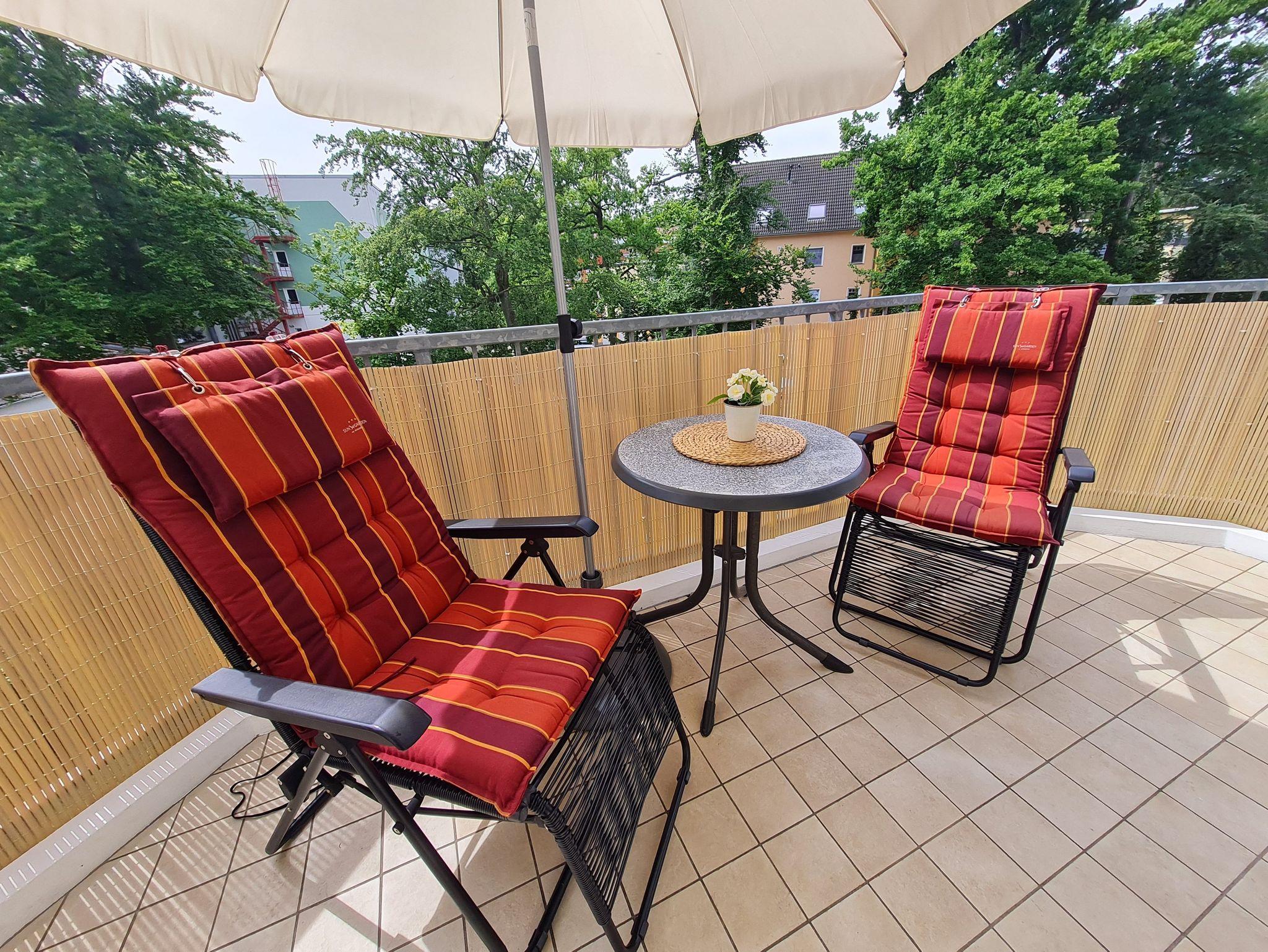 • Balkon: Südausrichtung, Tisch, 4 Stühle, Sonnenschirm