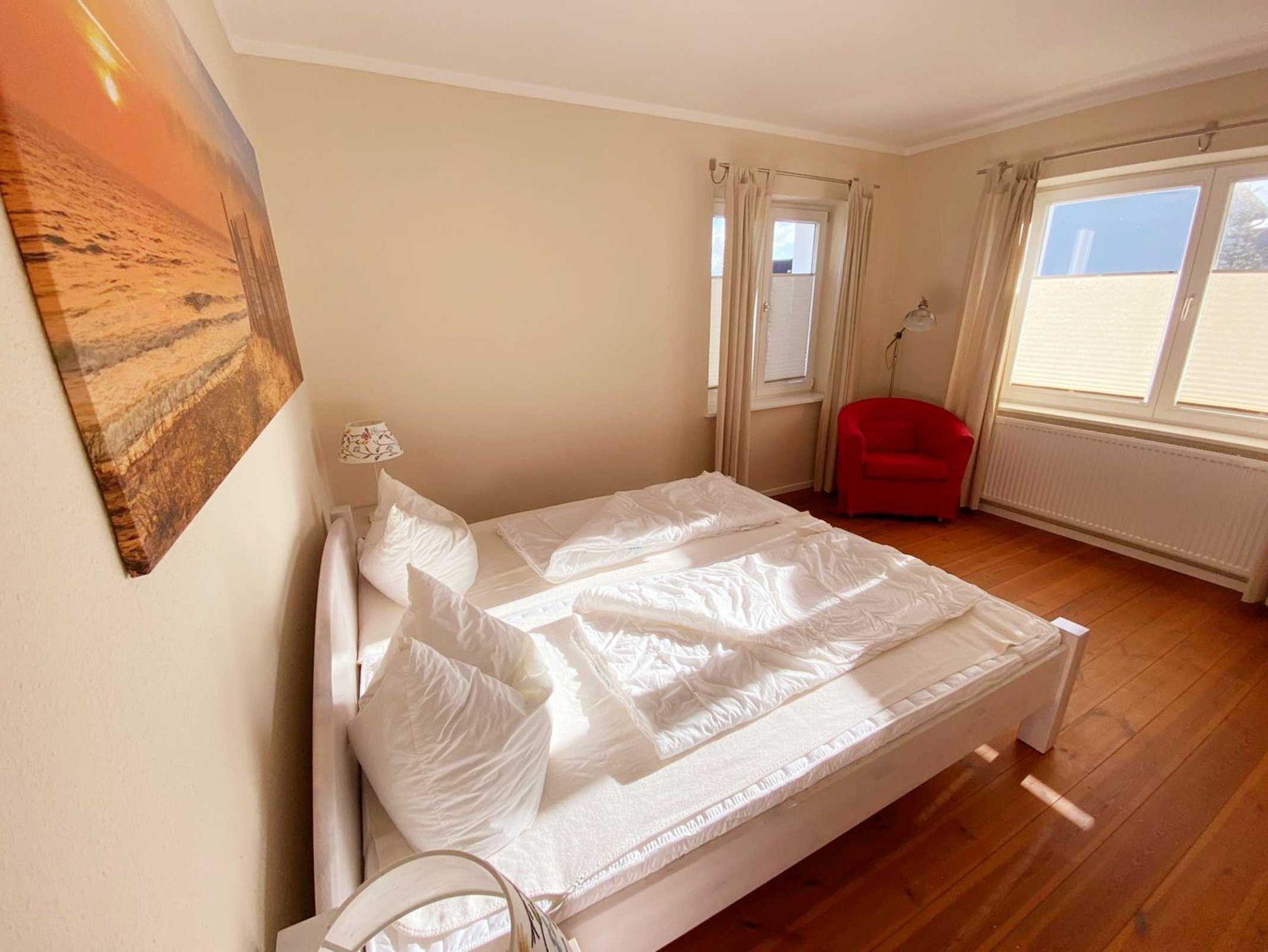• Schlafzimmer I: Doppelbett mit zwei Einzelmatratzen 90x200 cm, Schrank, Nachttische und Lampen, Sessel, Leselampe
