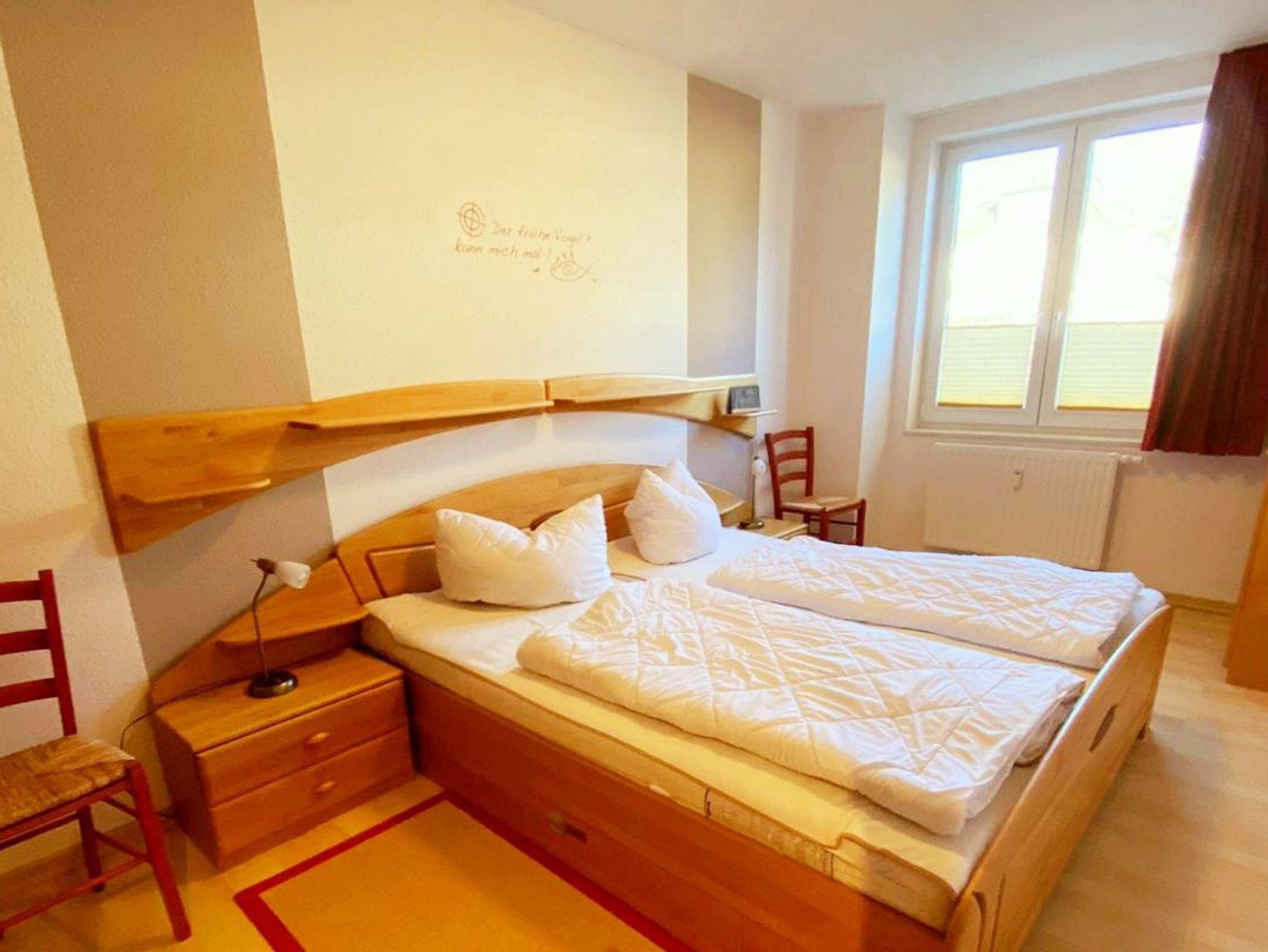 • Schlafzimmer I: Doppelbett mit 100x200cm Matratzen, Schrank, Nachttische und Lampen, Stuhl, Regal