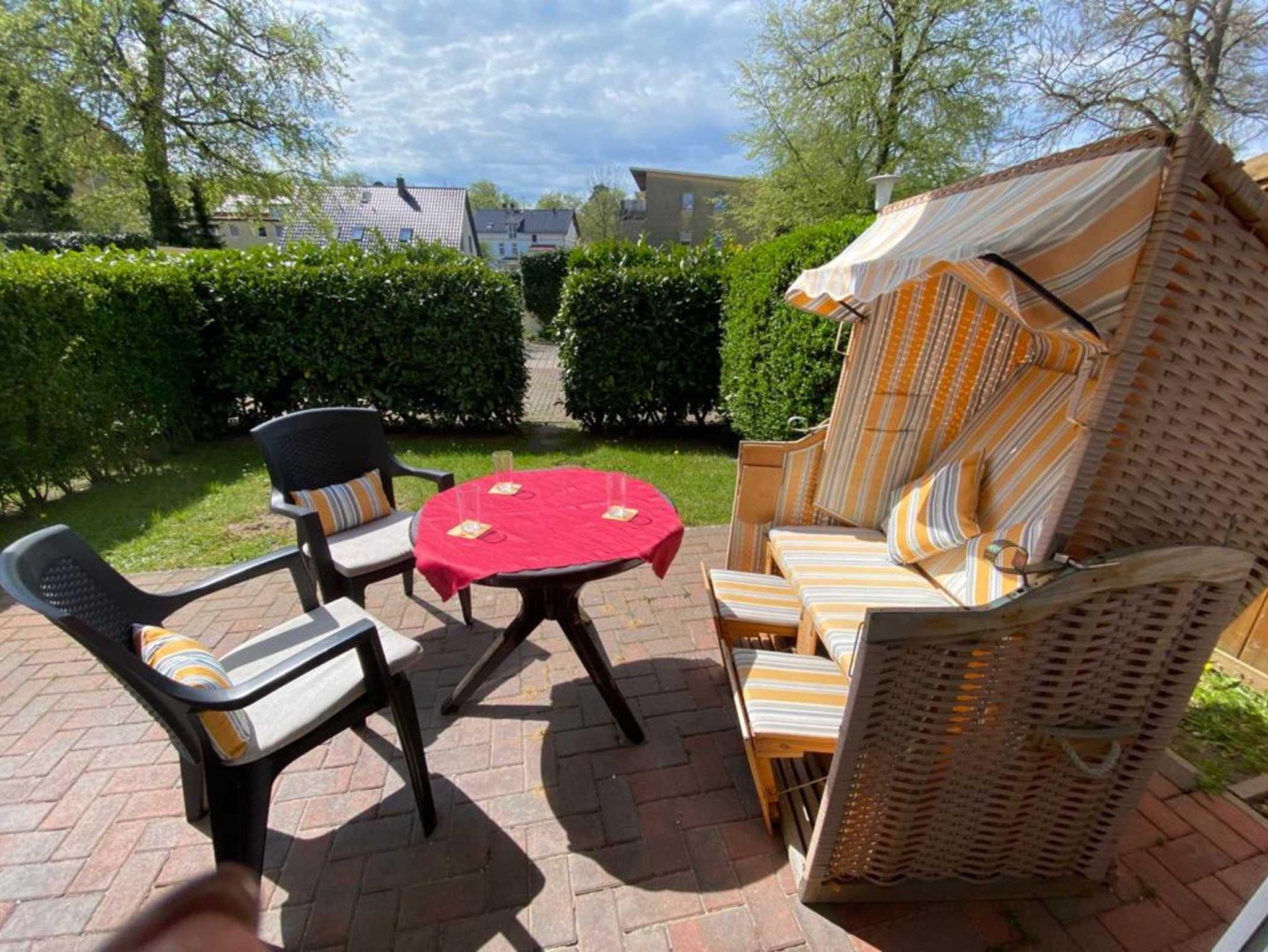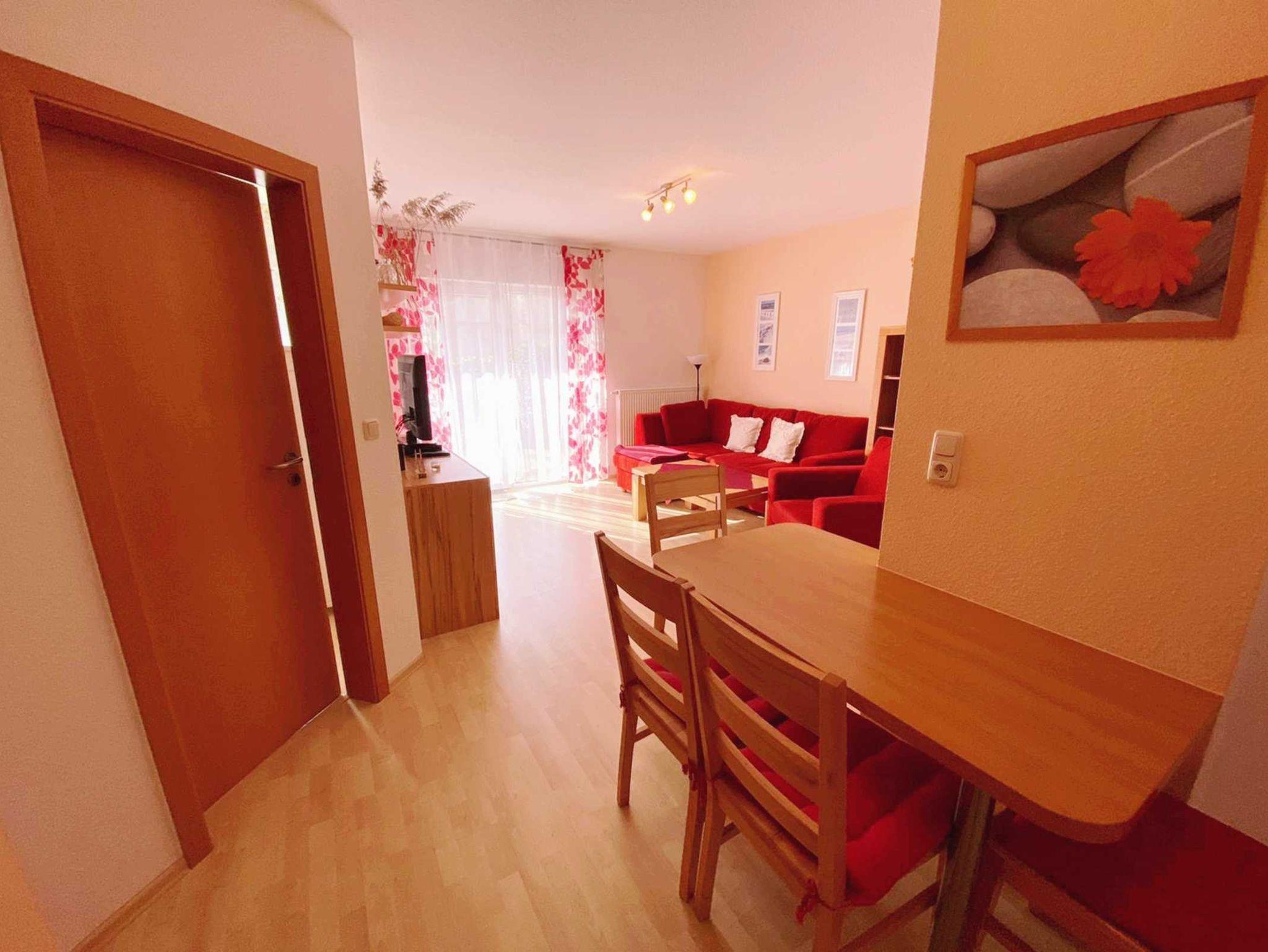 Nur 350m vom Strand entfernt liegt diese gemütlich und modern eingerichtete 2-Raum-Wohnung im Erdgeschoss mit ca. 48 m² Wohnfläche und einer sonnigen Südterrasse. Die sehr helle und freundliche Wohnung kann mit bis zu 4 Personen genutzt werden. Ein separates Schlafzimmer und eine 1,60x2,00 m große Schlafcouch, bieten Platz für 4 Personen. Praktisch erreichbar befindet sich vor dem Objekt ein abschließbarer Außenabstellraum, der bis zu 4 Fahrrädern Platz o.ä. bietet. Der Wohnung ist ein kostenloser Stellplatz Nr.2 zugeordnet. Ebenso haben Sie kostenloses WLAN.