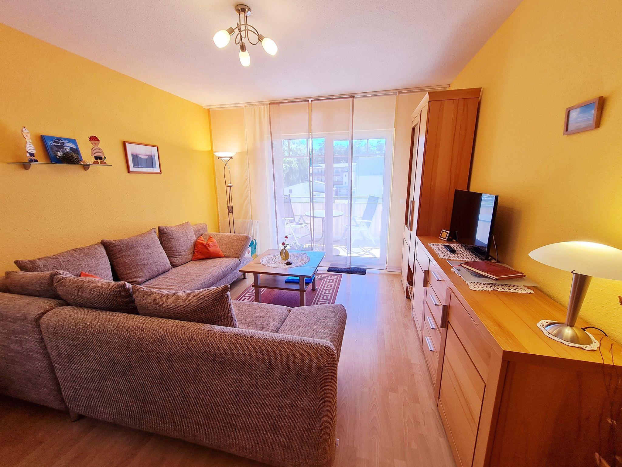 Nur 350m vom Strand entfernt liegt diese gemütlich und modern eingerichtete 2-Raum-Wohnung im 2. OG mit ca. 48 m² Wohnfläche und einem sonnigen Südbalkon. Die sehr helle und freundliche Wohnung kann mit bis zu 2 Personen (3. Person auf Anfrage) genutzt werden. Ein gemütliches Schlafzimmer, bieten Platz für 2 Personen. Praktisch erreichbar befindet sich vor dem Objekt ein abschließbarer Außenabstellraum, der Platz für Fahrräder o.ä. bietet. Der Wohnung ist ein kostenloser Stellplatz Nr. 30 zugeordnet. Eine Waschmaschine steht Ihnen hier auch zu Verfügung.