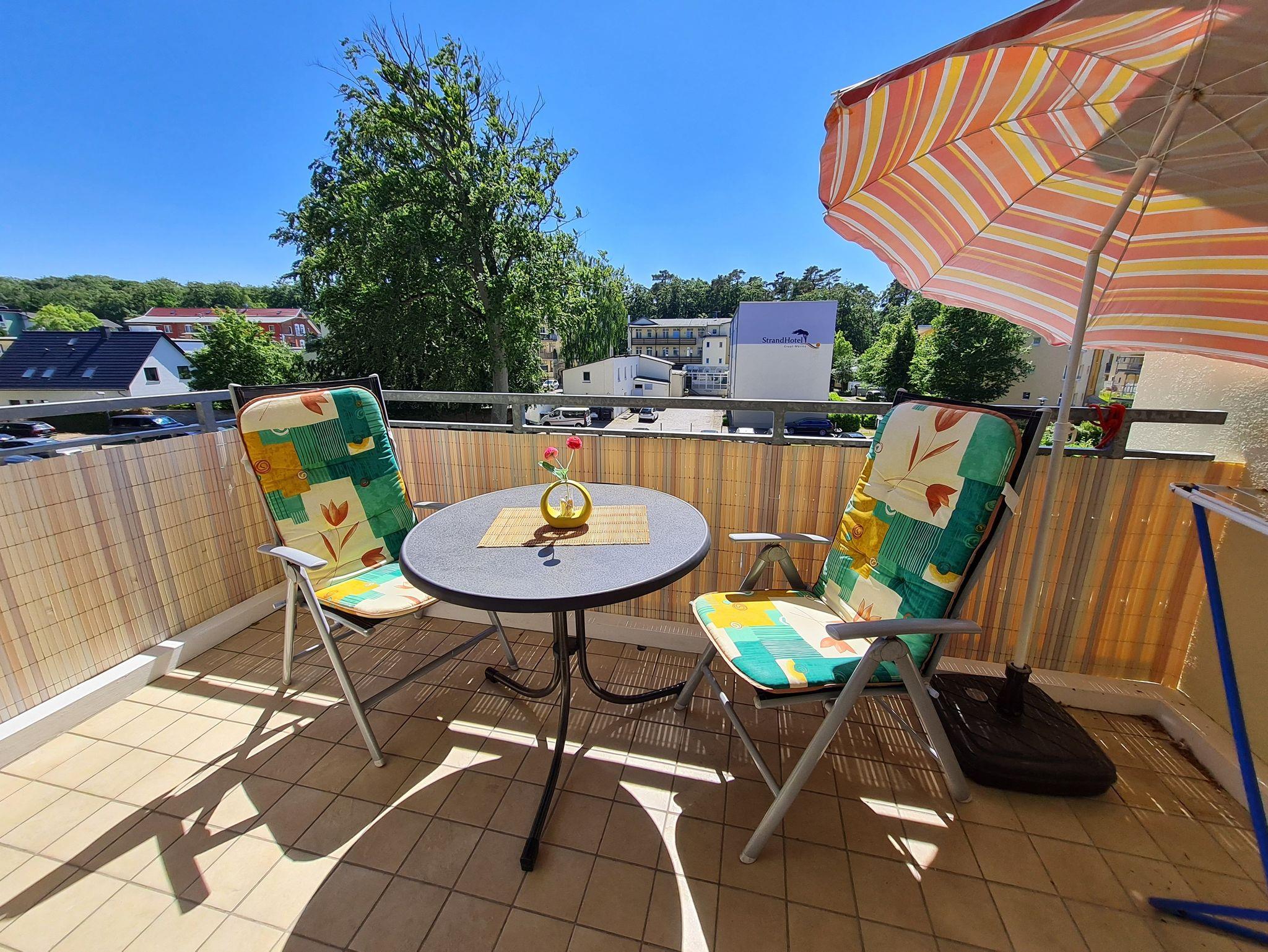 Nur 350m vom Strand entfernt liegt diese gemütlich und modern eingerichtete 2-Raum-Wohnung im 2. OG mit ca. 48 m² Wohnfläche und einem sonnigen Südbalkon. Die sehr helle und freundliche Wohnung kann mit bis zu 2 Personen (3. Person auf Anfrage) genutzt werden. Ein gemütliches Schlafzimmer, bieten Platz für 2 Personen. Praktisch erreichbar befindet sich vor dem Objekt ein abschließbarer Außenabstellraum, der Platz für Fahrräder o.ä. bietet. Der Wohnung ist ein kostenloser Stellplatz Nr. 30 zugeordnet. Ebenso verfügt die Wohnung über kostenloses Wlan und eine Waschmaschine steht Ihnen hier auch zu Verfügung.