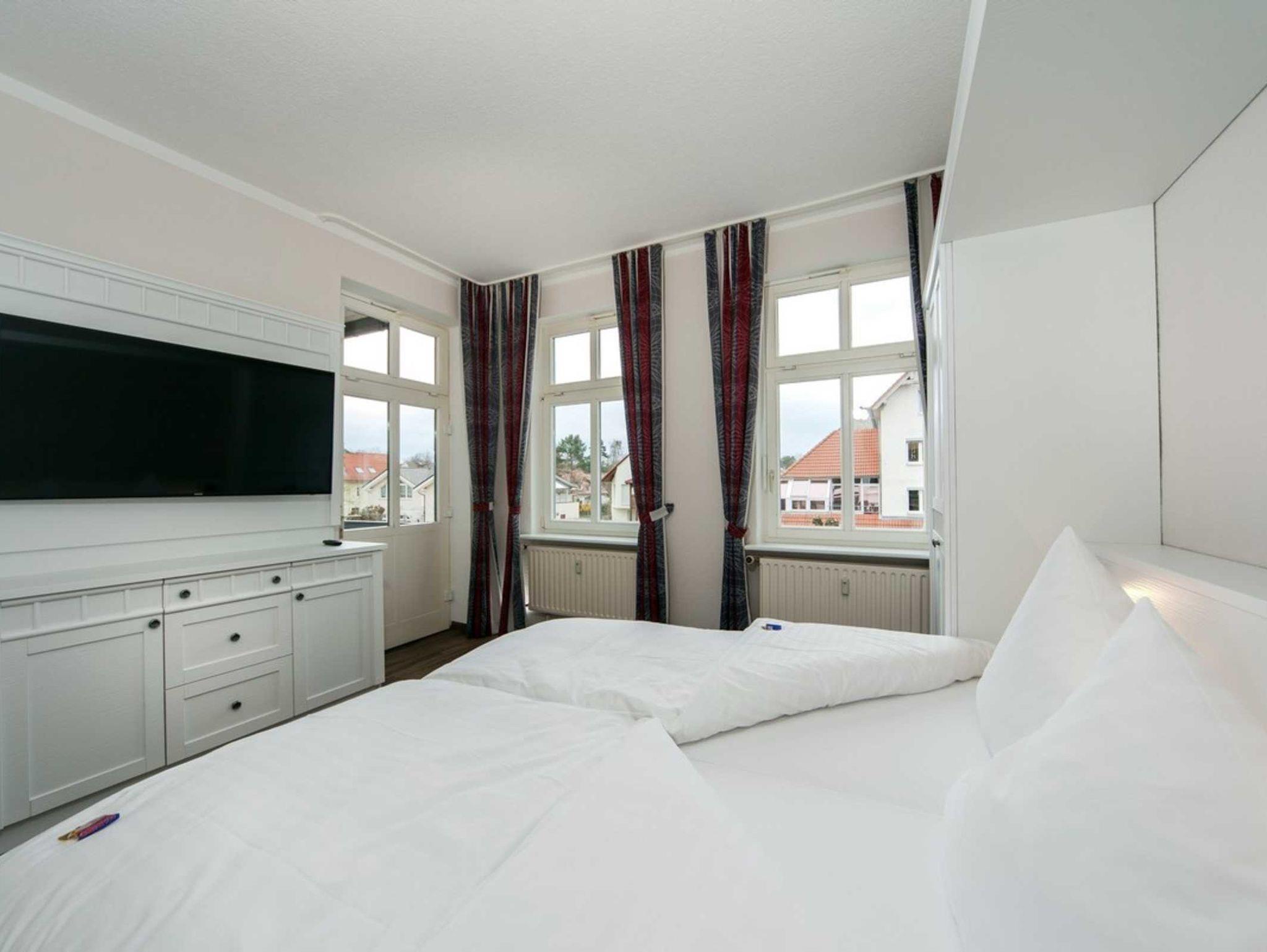 Dieses Appartement verfügt über ein Schlafzimmer mit Doppelbett und einen kombinierten Wohn- und Küchenbereich mit Schlafcouch, die maximal 2 zusätzlichen Personen erholsamen Schlaf bietet. Vom Schlafzimmer gelangen Sie auf den überdachten Balkon, der Ihnen einen Ausblick auf die Kurstraße gibt.