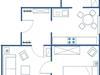 • Bad: Tageslichtbad mit geräumiger Dusche, Waschtisch mit Unterschrank, Toilette, Spiegel, Handtuchhalter, Regal